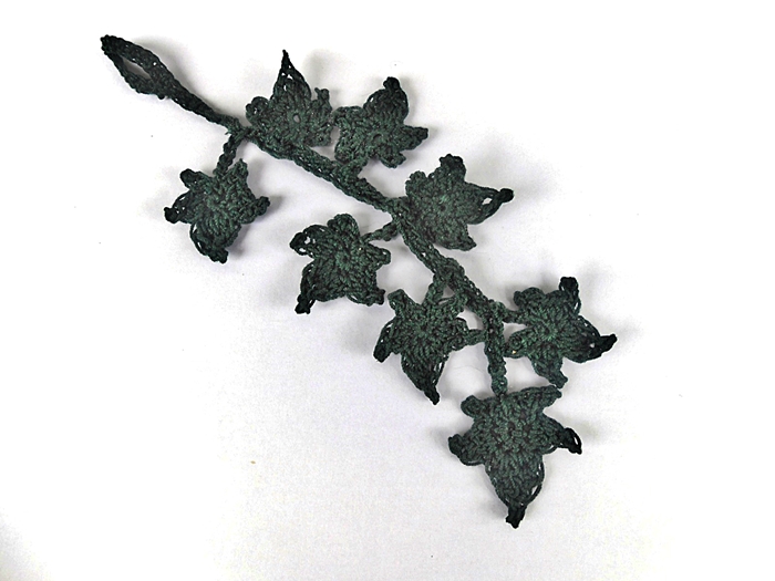 Die abgebildete Ranke ist aus Häkelgarn mit einer Nadel in Stärke 2 gehäkelt