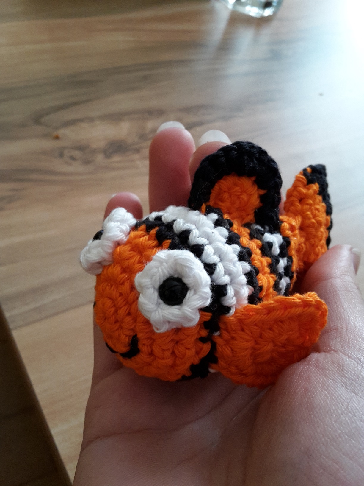 Der süße Clownfisch "Jonny" wird ca. 9 cm lang und 6 cm hoch (Maße inklusive Flossen) und ist damit sowohl als Taschenbaumler, als auch als Schlüsselanhänger oder kleiner Kuschelpartner geeignet!Was du benötigst: