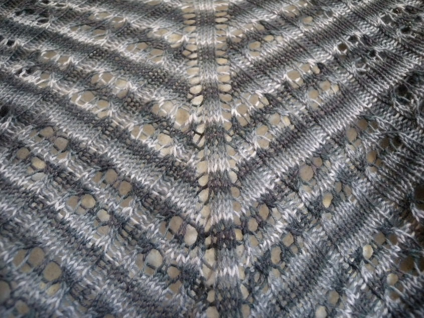 Grau wie der Regen im November ist dieses Lace-Tuch, das man natürlich auch in jeder anderen Farbe stricken kann.