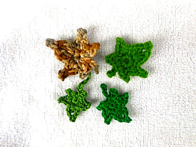 Die abgebildete Ranke ist aus Häkelgarn mit einer Nadel in Stärke 2 gehäkelt.