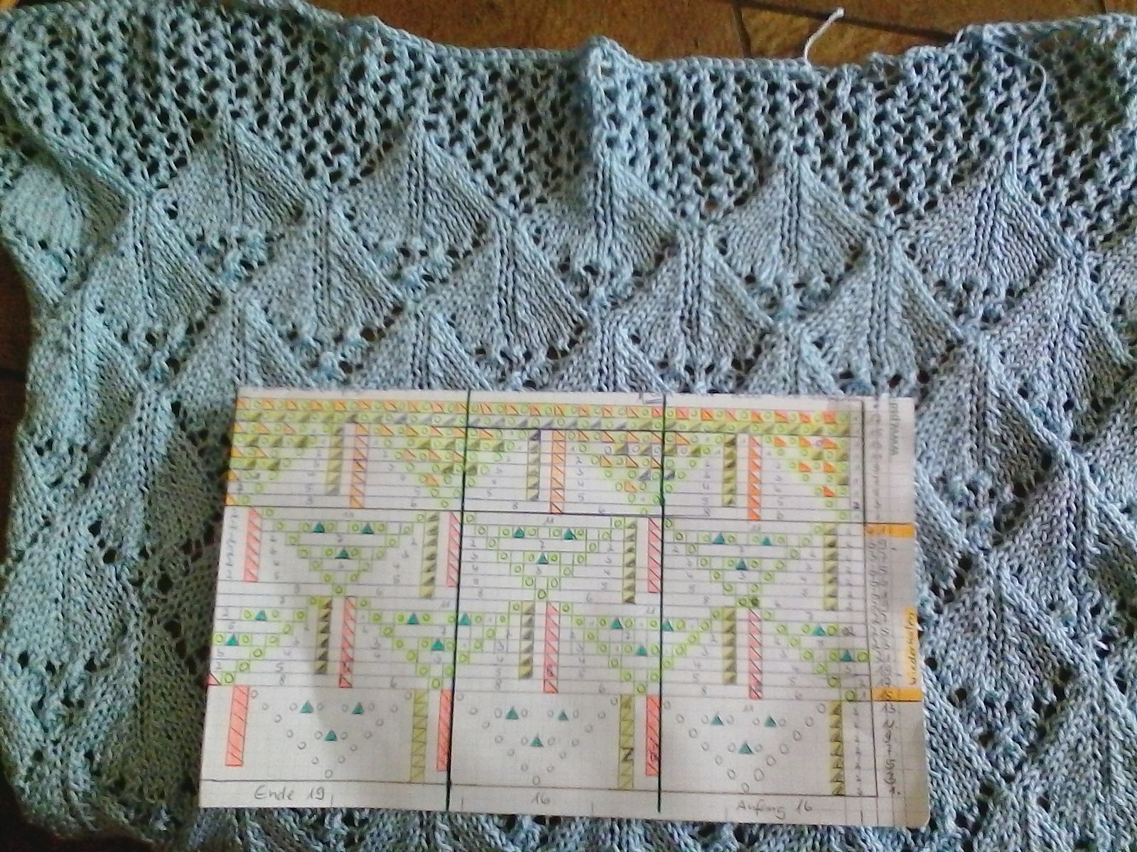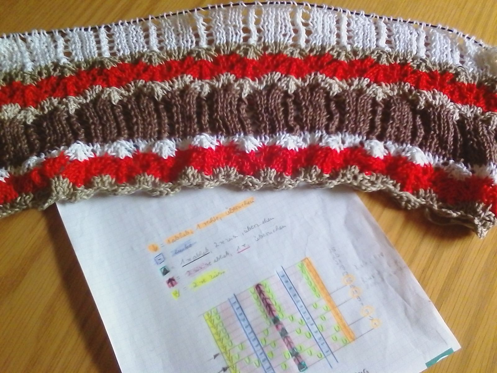 Wenn ich Ajourmuster stricke, zeichne ich sie mir nochmals größer ab. -