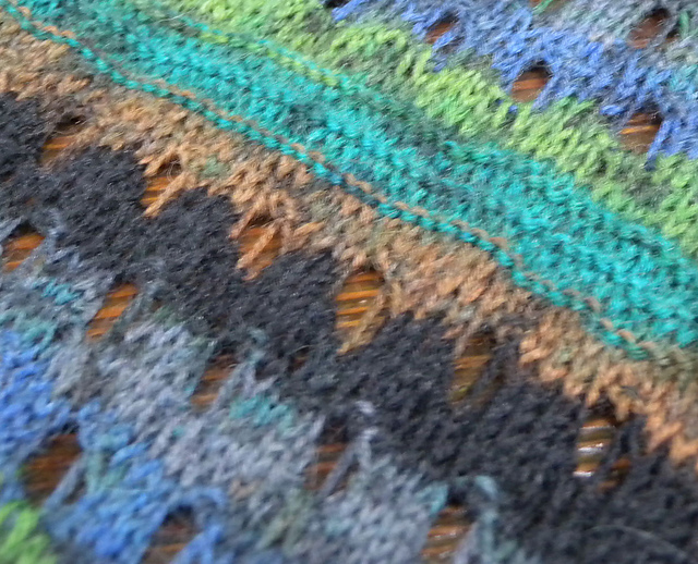 225 g KidSilk von Austermann, Farbe 40 Smaragd, 75 % Kidmohair, 25 % Seide,Angaben lt. Banderole: Nd. 3 – 4, 18 Ms x 26 R = 10 cm x 10 cm, Handwäsche, 25 g – 225 m Lauflänge; Alternativgarne sind in der Anleitung angeführt.