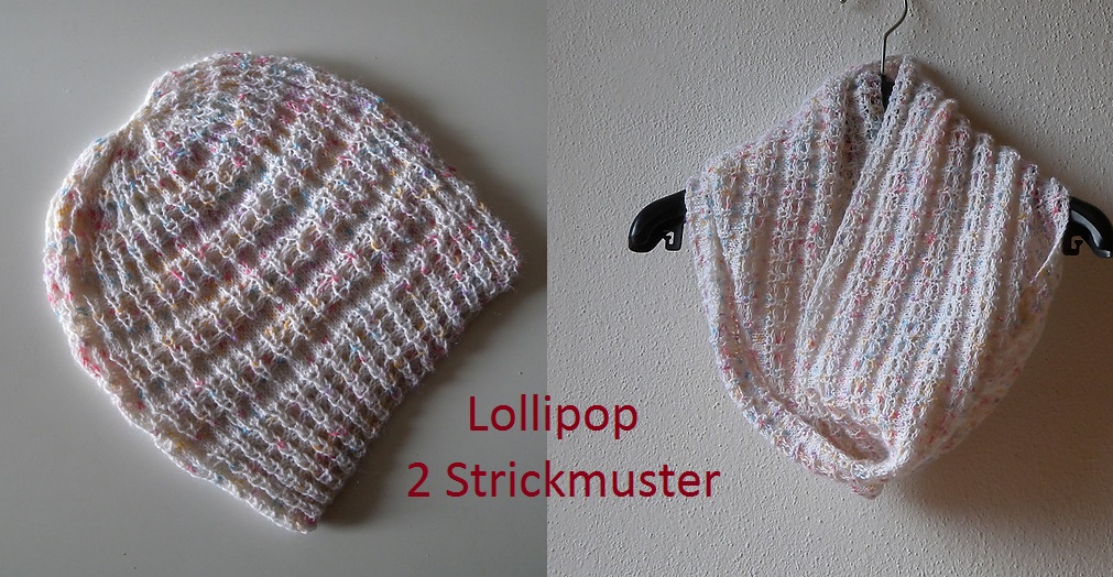 Sowohl Mütze als auch Loop werden im gleichen Muster aus Sockenwolle gestrickt. Das Muster beinhaltet einen gewissen Aha-Effekt, ist aber nicht schwierig zu stricken.