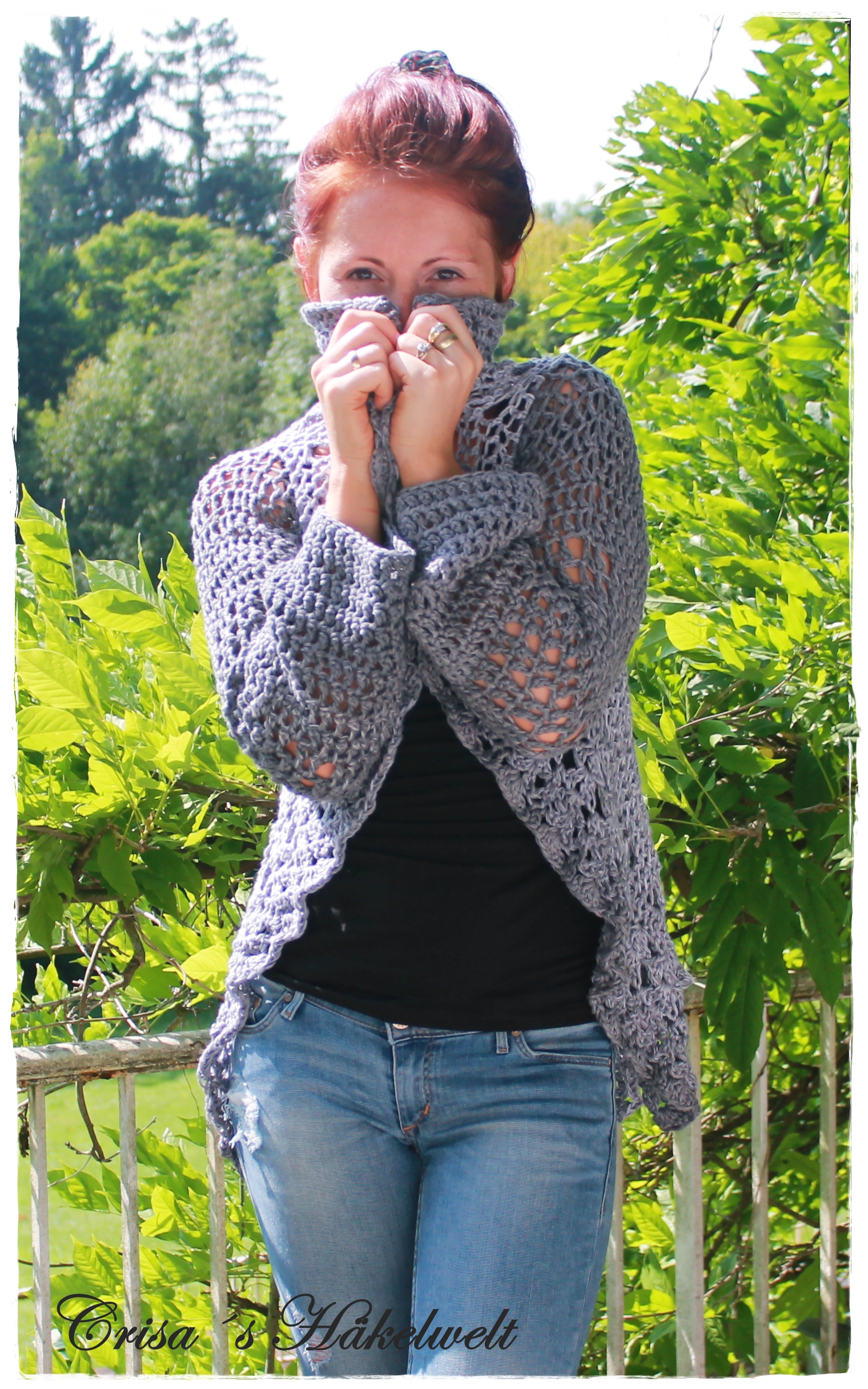 Jedoch ist in der Anleitung beschrieben, wie der Shrug ganz einfach an jede Größe angepasst werden kann.