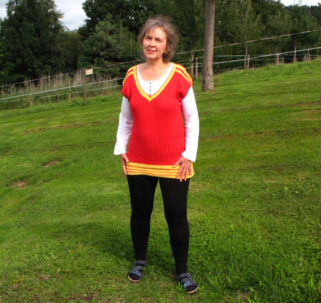 Es ist natürlich wieder eine Rechenhilfe mit der Anzahl von Maschenanschlägen vorgegeben, so daß das umrechnen kein Problem darstellen sollte.