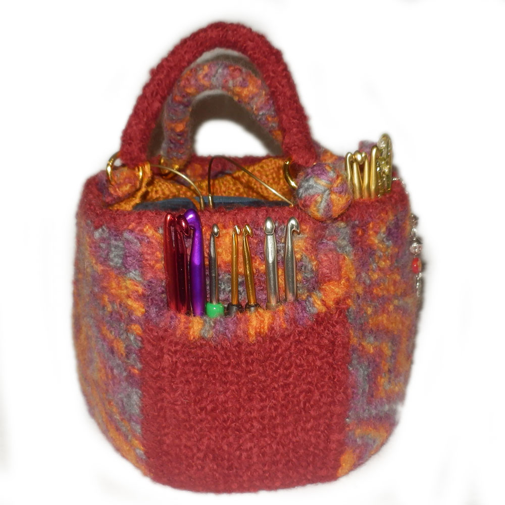 • Die Henkel habe ich gestrickt, aber wer lieber häkelt braucht nur ein entsprechendes Band häkeln.