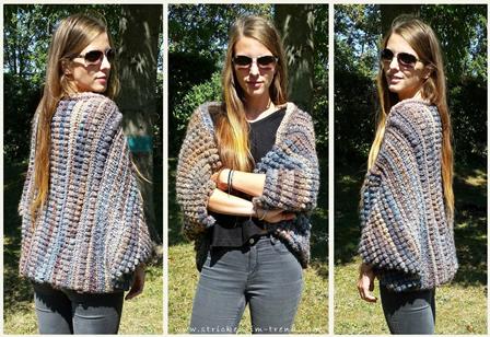 Jedoch ist in der Anleitung beschrieben, wie der Shrug ganz einfach an jede Größe angepasst werden kann.