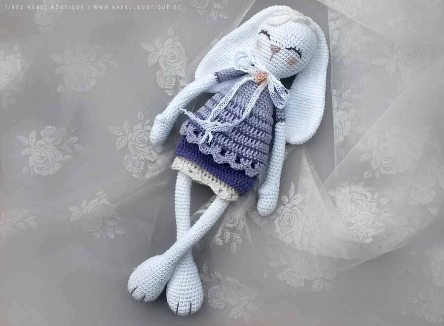 Fräulein Sara ist eine verträumte Hasendame mit einem Hang zur Romantik. Sie liebt Spitze, Rüschen und Pastellfarben und ist eine tolle Begleiterin für junge Damen :-)