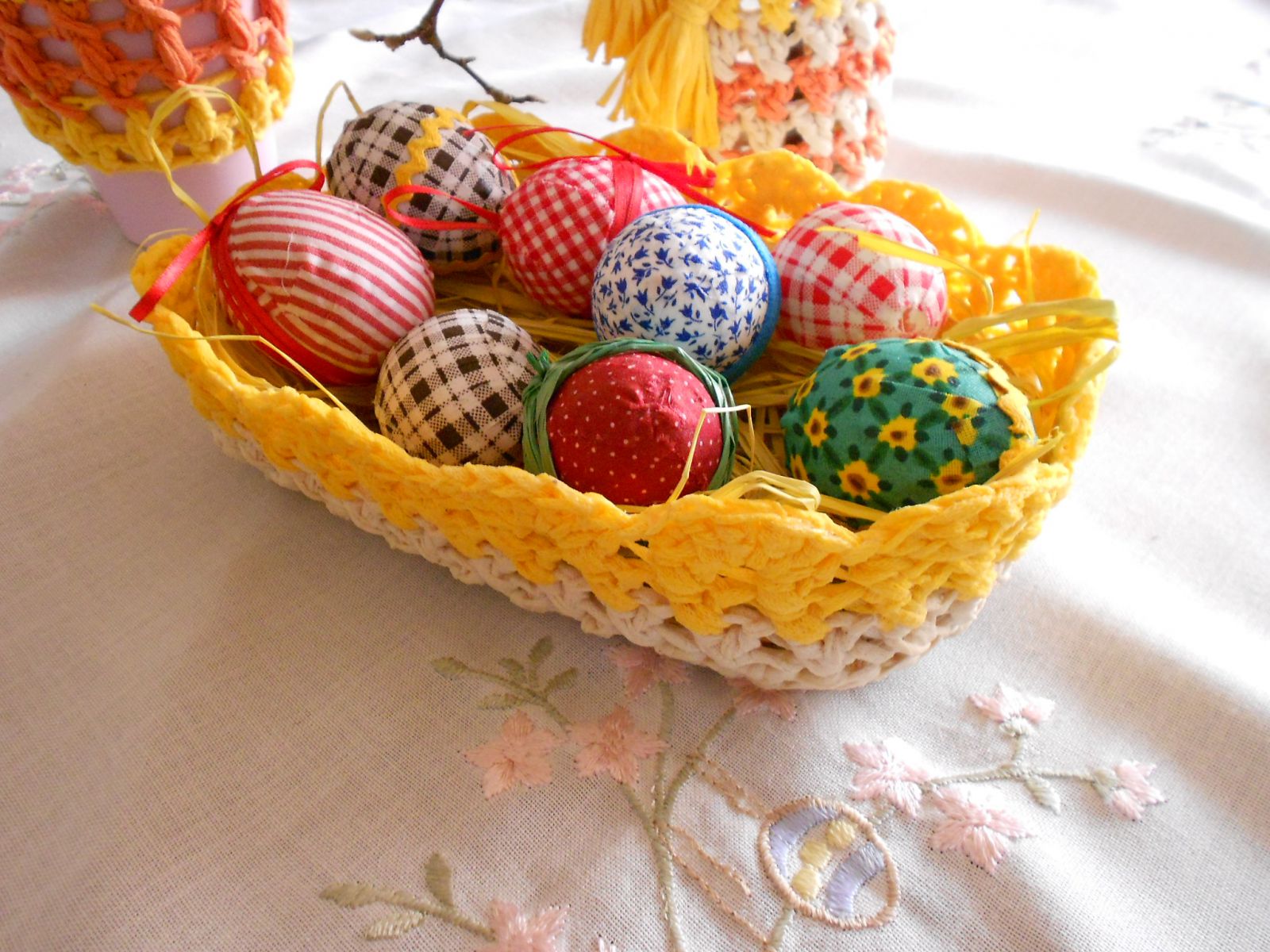 Von mir noch eine Oster Idee: mit Stoffresten beklebte, ausgeblasene Eier. Die Soffreste mit Textil- Poch oder verdünntem Holzleim oder aber durchsichtigem Acryl- Lack aufbringen.