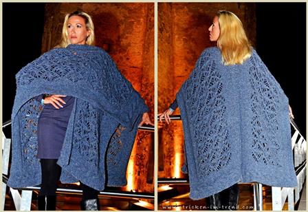 Dieser feminine Poncho ist ein echter Verwandlungskünstler, denn es gleichzeitig ein Dreieckstuch. Mit seinem Lochmuster und den Wellen ist es ein echter Hingucker und eignet sich für viele Gelegenheiten.