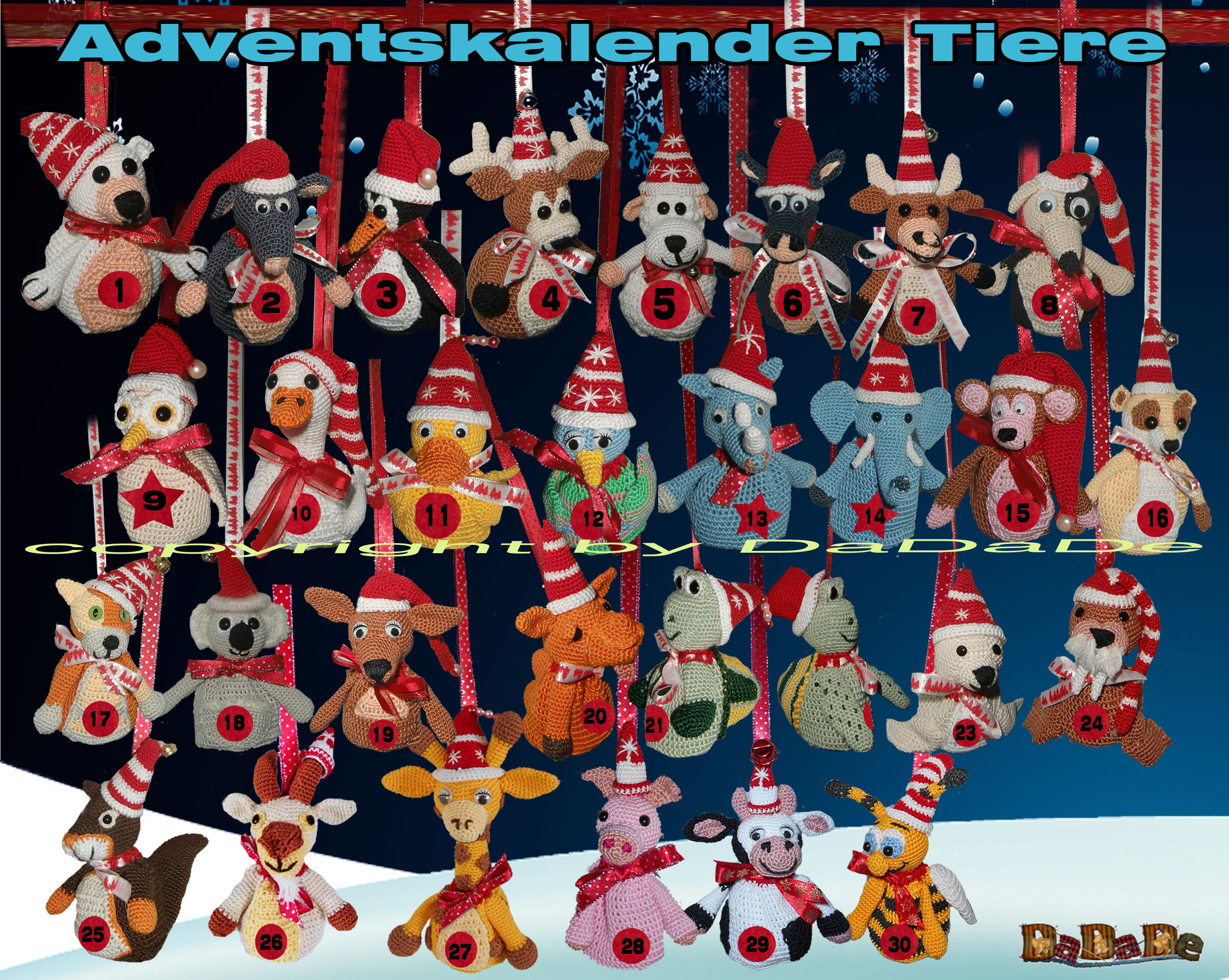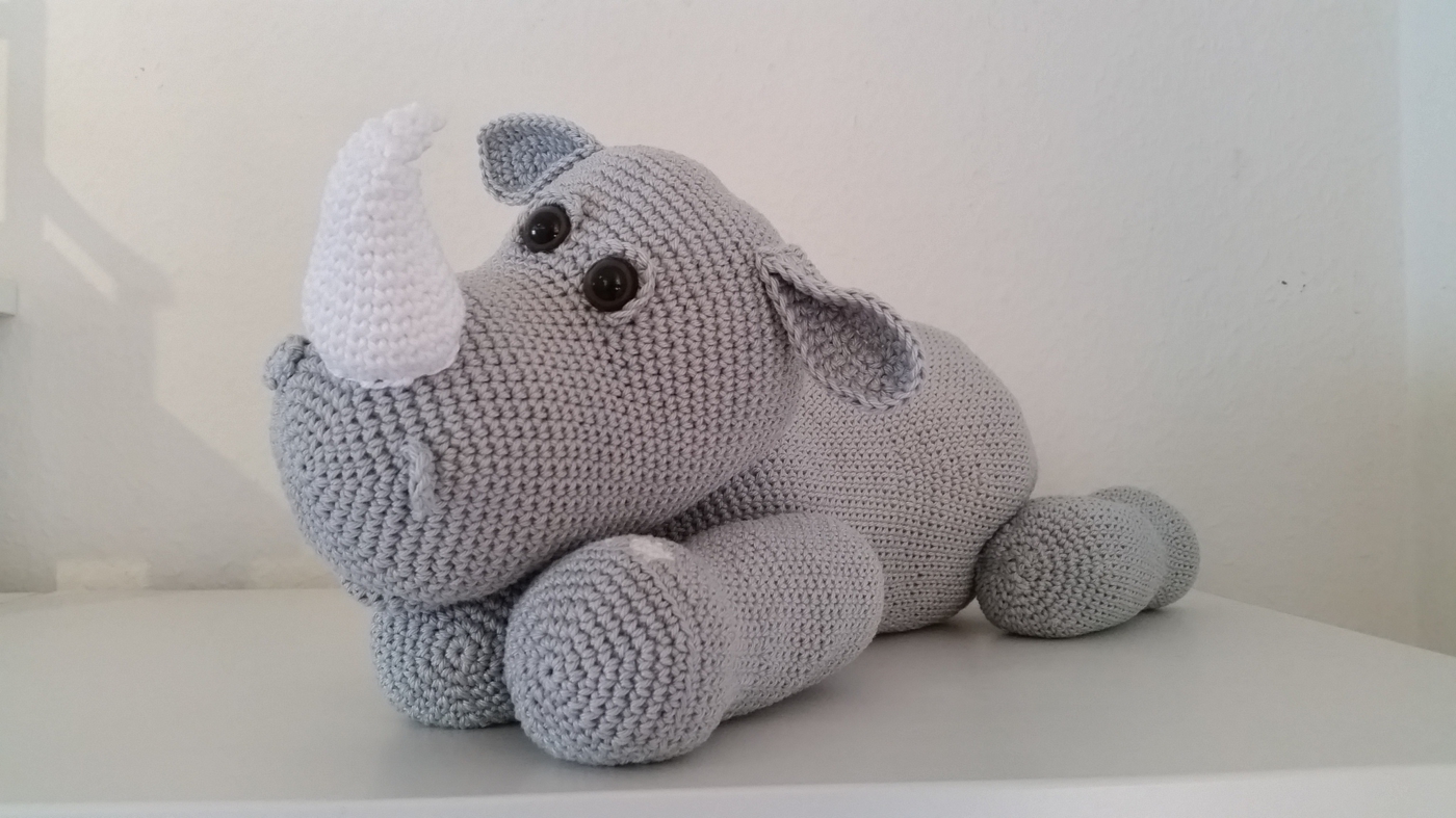 In meiner ausführlichen Häkelanleitung wird Schritt für Schritt mit vielen Bildern die Entstehung von Eddie beschrieben. Die Anleitung ist auch sehr gut für Anfänger, da eben so viele Bilder und genaue Beschreibungen vorhanden sind. Die Maße des Elefanten, wenn man mit der angegebenen Wolle arbeitet: 33x30 cm