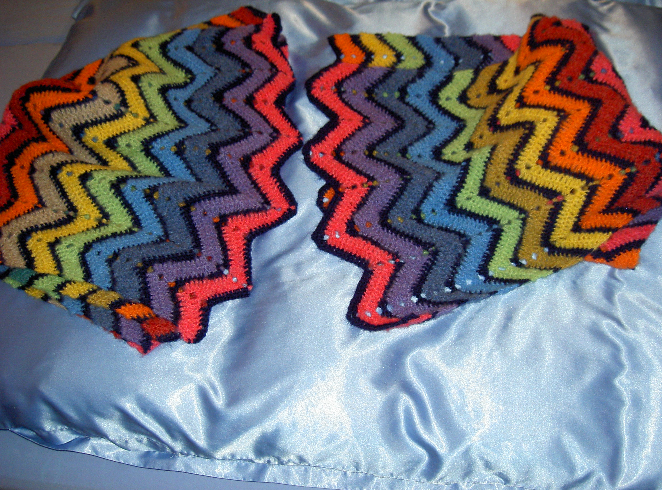 Ich war wirklich fleißig und habe einen ziemlich großen Karton mit Resten verarbeitet. Es wurden eine große Stola, ein Stolatuch und zwei Schals daraus.