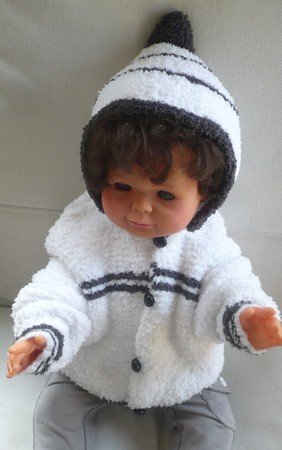 Material: Häkelnadel 5,5 - 6,00 mm; Wolle z.B. Woll Butt "Versailles", 100 % Polyacryl, Ll: ca. 196m, Verbrauch ca. 600g (300g grau, ~ 250 g schwarz)