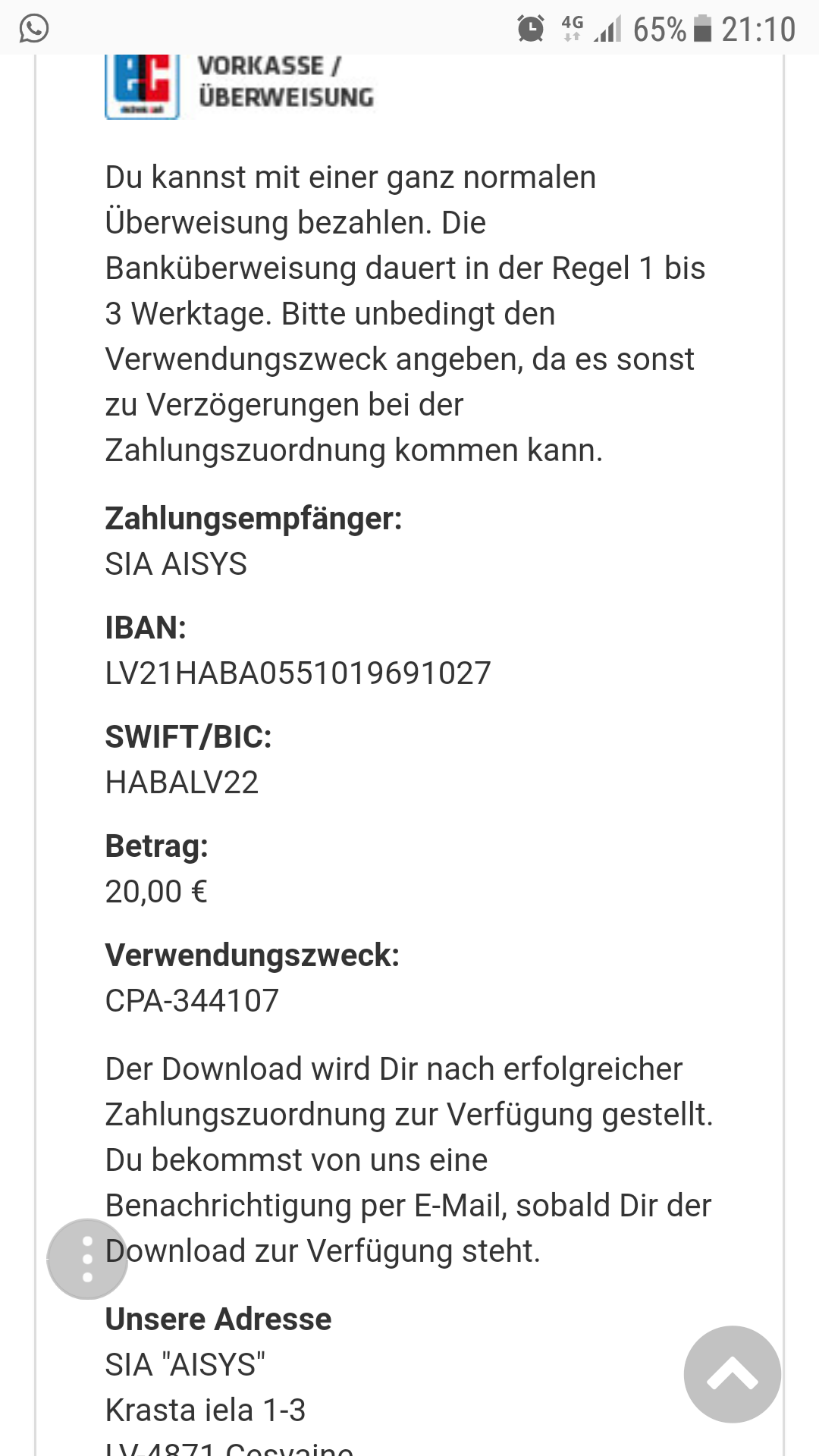du hast ja den Verwendungszweck angegeben, also kann deine Überweisung auch zugeordnet werden.