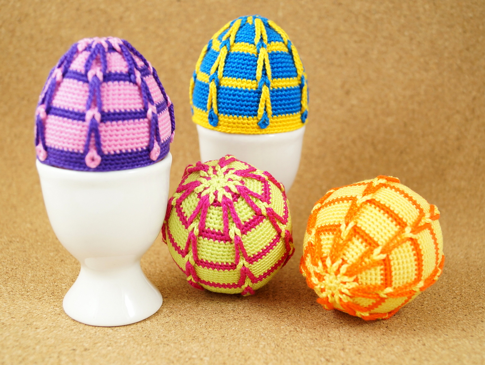 Bunte Eierwärmer und Osterei mit Schlingen (Muster No. 3) - 2 in 1 Anleitung!