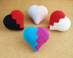 Mit dem Garn LL 125m/50g und Häkelnadel der Stärke 2 angefertigtes Herz wird ca. 6,5 cm groß. Mit dem Garn LL 300m/50g und Häkelnadel der Stärke 1,25 wird es ca. 4 cm groß.