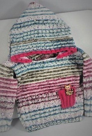 Hier gehts zur Strickanleitung für die bunte Kinderjacke mit Kapuze und Taschen.