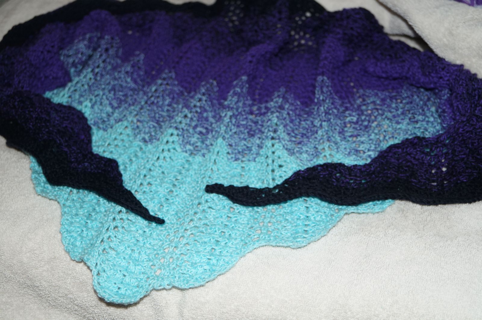 Ich habe gerade mein Urlaubs- Dreieckstuch fertig.