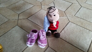 Ein paar Babyschühchen für eine Freundin und Linus von den Penuts