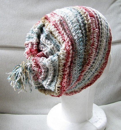 Dieses Modell besteht aus drei Mustern, die in Häkelschrift sowie auch schriftlicher Anweisung wiedergegeben werden. Man kann das Tuch nach Belieben vergrößern oder verkleinern oder auch nur als schlichtes Tuch häkeln.