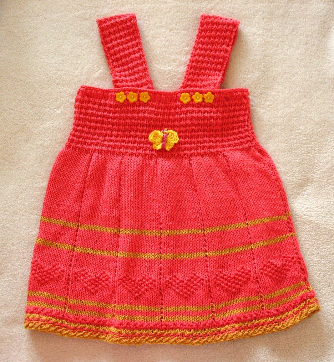 Das Kleid lässt sich auch von Anfängern mit Grundkenntnissen gut nachstricken. Die Anleitung erklärt alle Schritte, zum großen Teil auch mit Fotos. Das Trägerkleidchen hat keine Nähte. Es wird in einem Stück von unten nach oben gestrickt. Die gehäkelte Herzapplikation ist in der Anleitung enthalten und natürlich auch die (einfache) Tabelle für die eingestrickten Herzen.