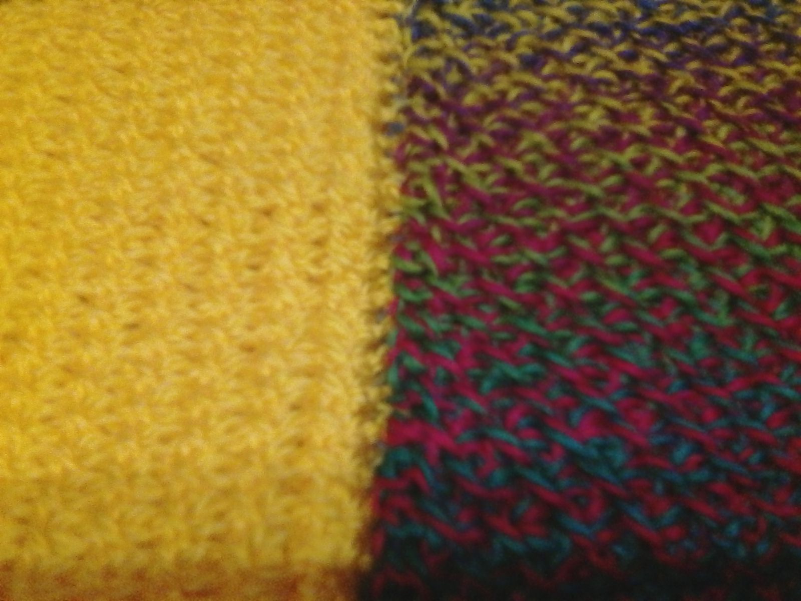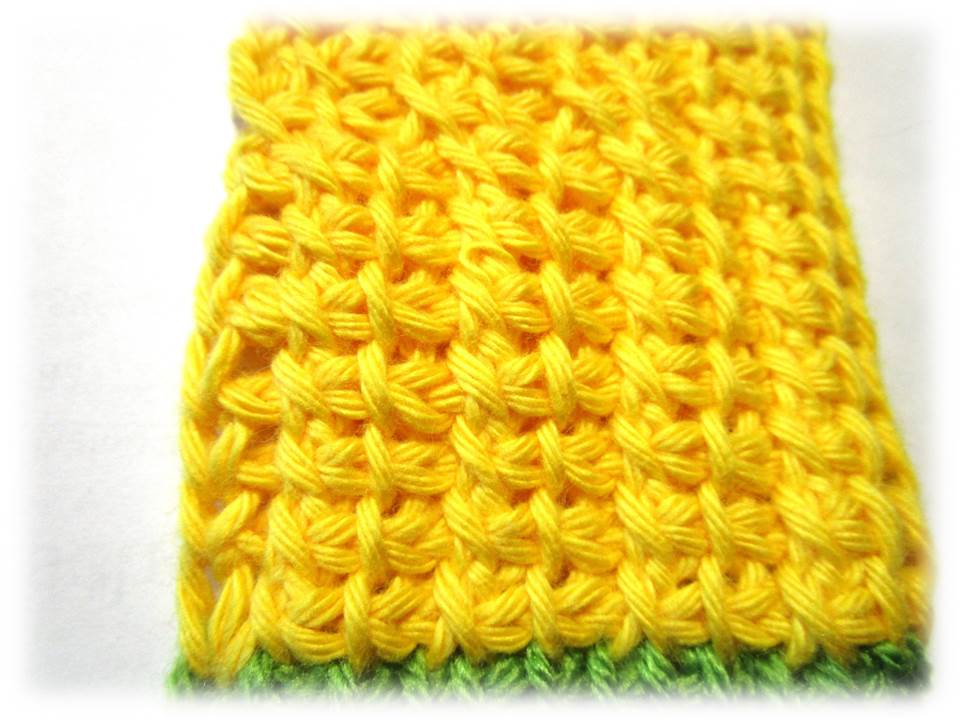 Ich habe mal ein Beispiel vom versetzten Kreuzmuster angehängt. Das obere Foto ist aus dem wirklichen tollen Buch was ich mir zugelegt habe und das gelbe Muster ist mein gehäkeltes, das sieht doch ganz anders aus. Obwohl ich es nicht hässlich finde nervt es mich das ich das Original nicht hinbekomme.