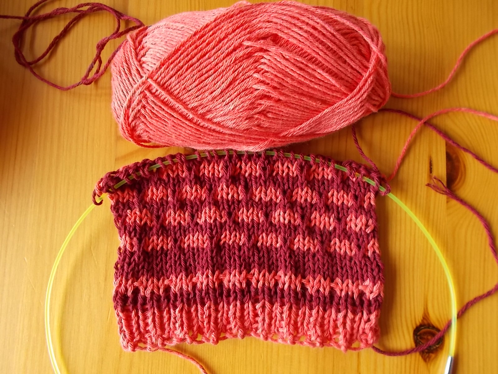 Ich hab mir schon einige Farben von meiner Vorratswolle zusammengestellt, mit denen ich jetzt ein bisschen mit Mustern experimentieren werde. Der Pulli für Fynn sieht bis jetzt schon ganz süß aus, schau mal: