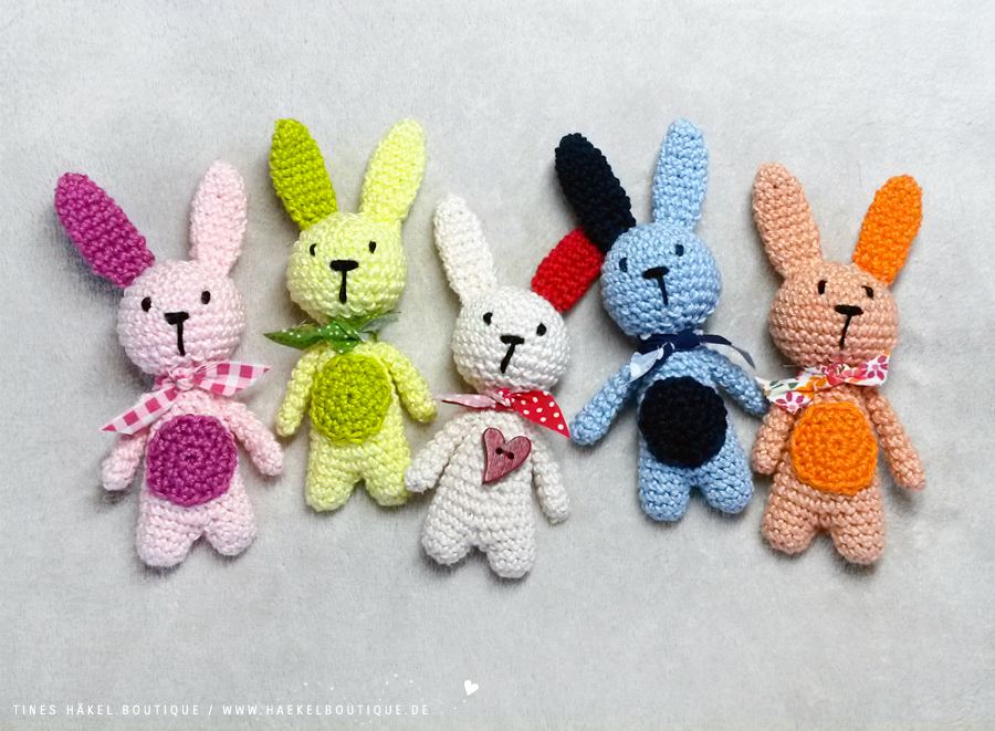 Gut geeignet für Anfänger und zur Resteverwertung. Sehr schnell gehäkelt (für Geübte: pro Häschen ca. 10 Minuten)