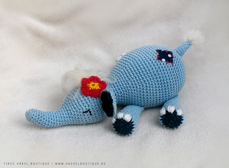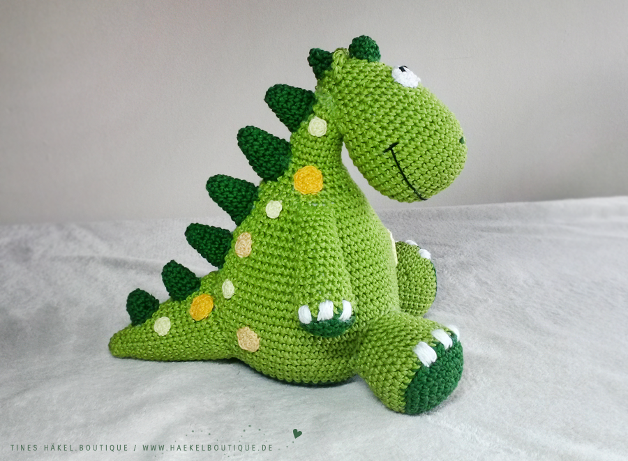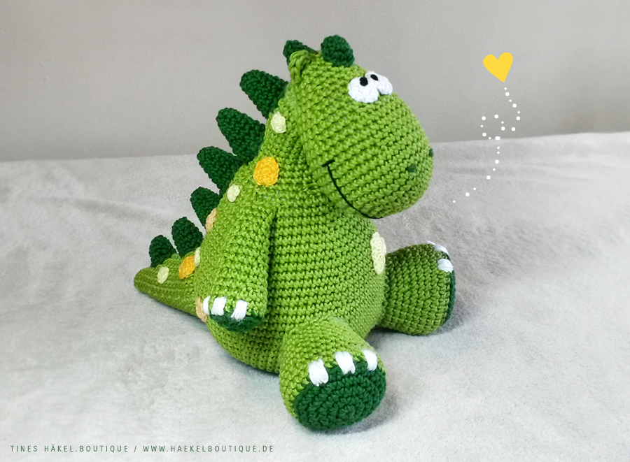 Lurchi ist sehr Pflegeleicht, er wird im Perlmuster gehäkelt das wird in der Anleitung erklärt und besteht aus Luft und festen Maschen.