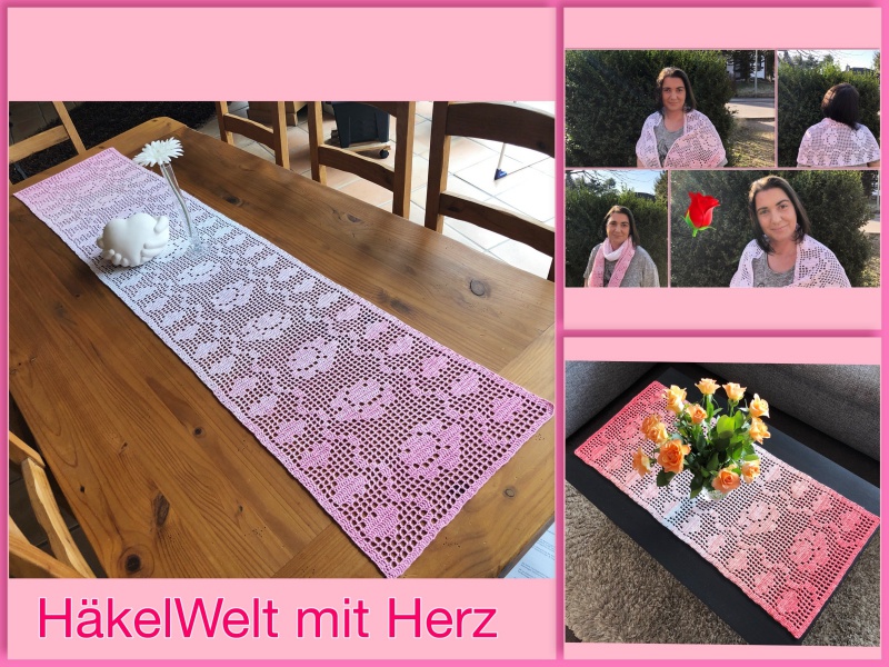 Bei 1500 m LL kann man den kompletten Mustersatz Herzen, Grannys, Schmetterling ein weiterer Mustersatz Herzen sowie eine Reihe Schmetterlinge paar Reihen Grannys häkeln