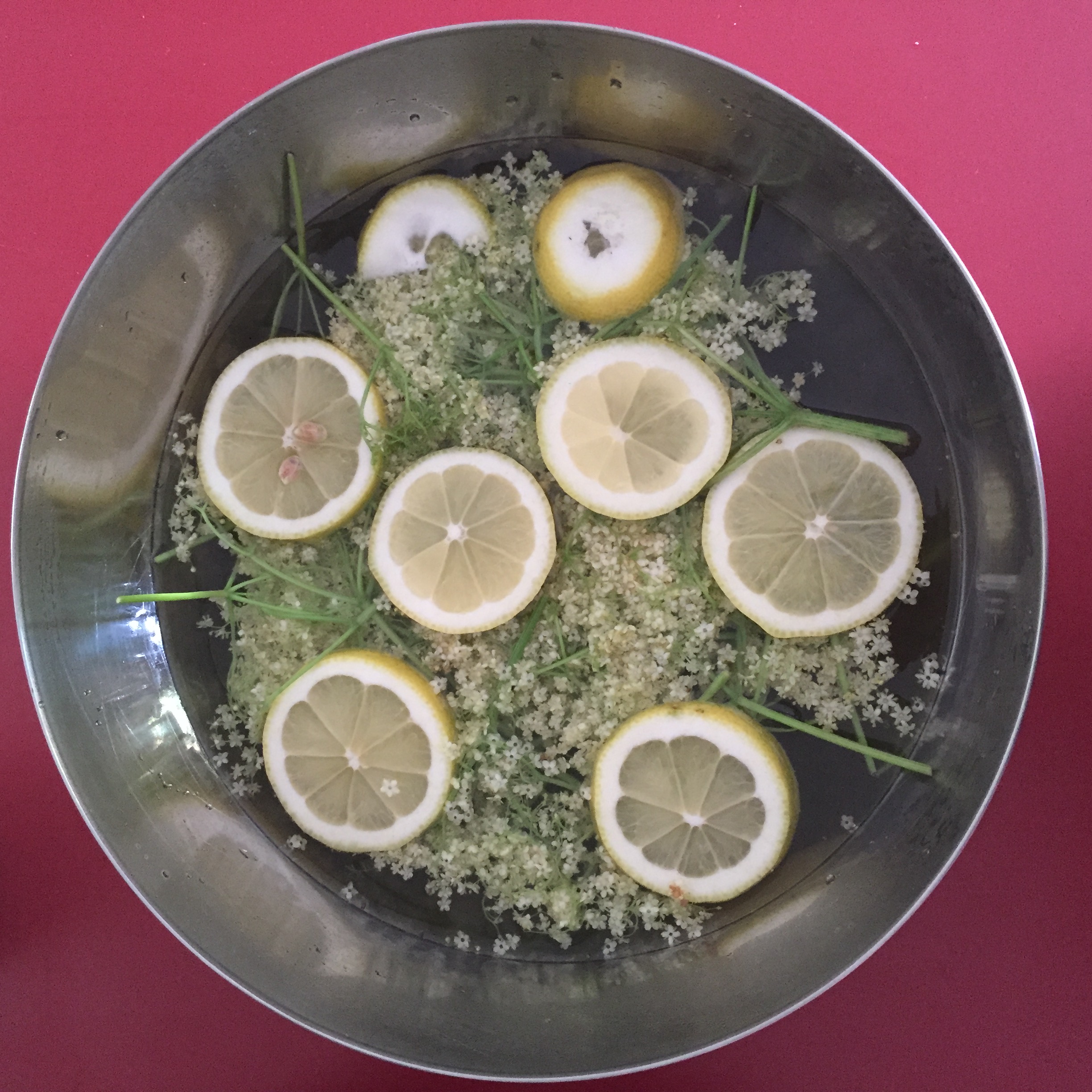 Ich habe mich eben das erste Mal daran versucht, Holunderblütensirup selbst zu machen.