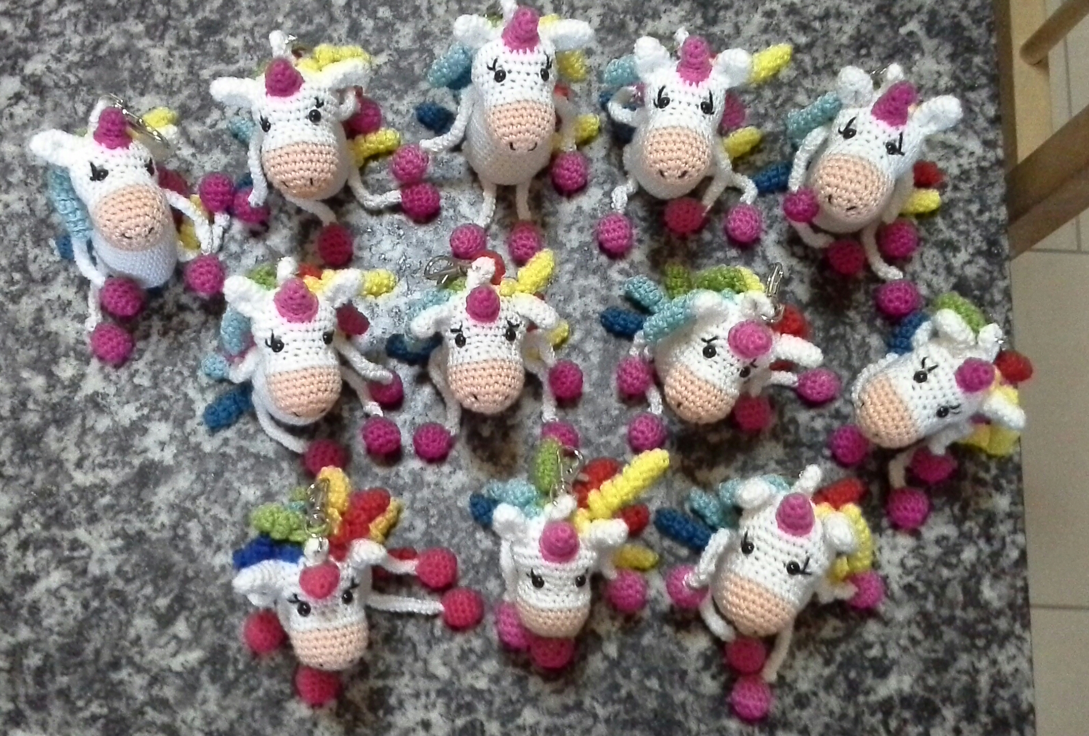 Ich bin endlich fertig mit meinen Einhorn-Schlüsselanhängern.