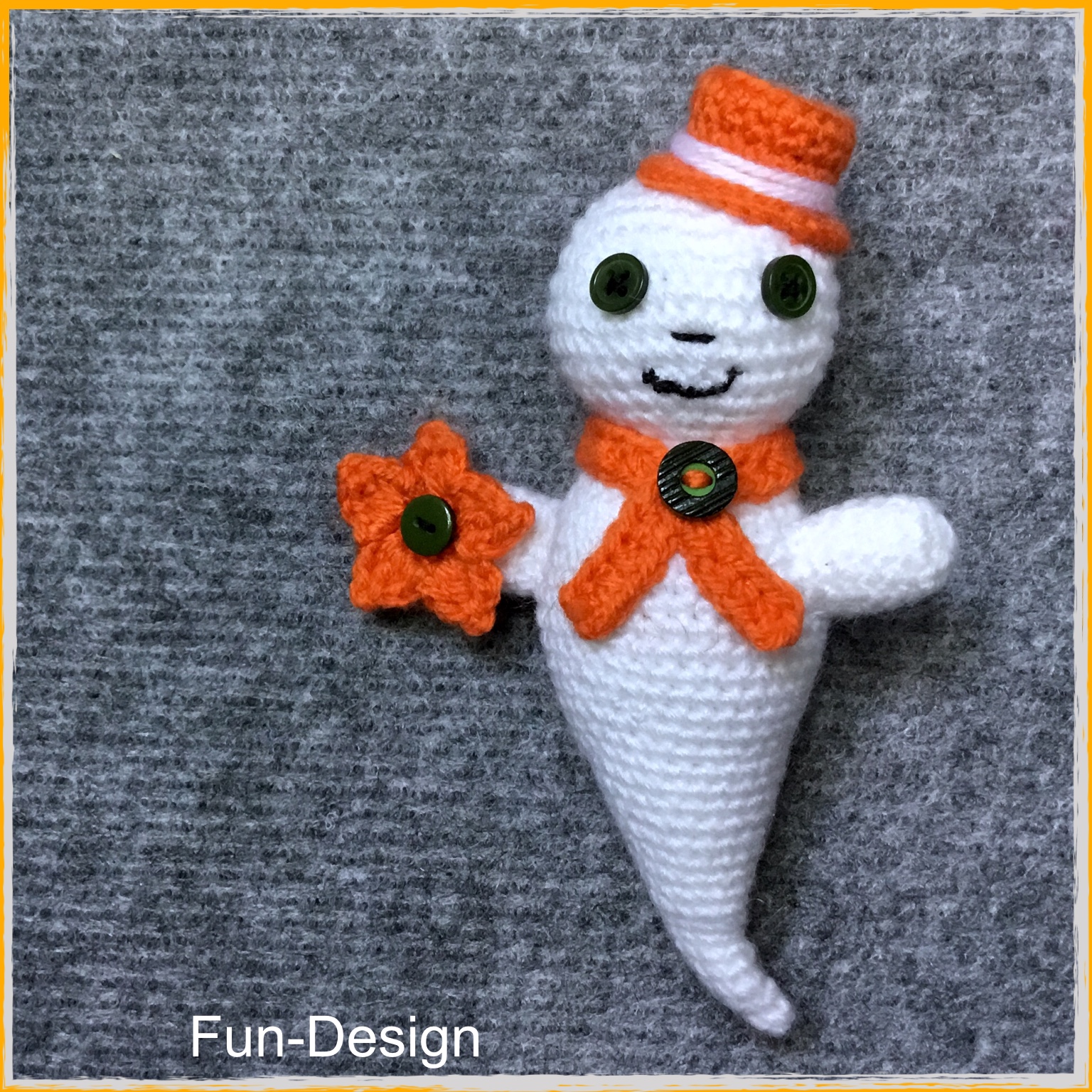 Oder gefällt dir Gernot besser? Er ist schnell gehäkelt und kann entweder durch den Raum schweben oder auch irgendwo überkopf abhängen...