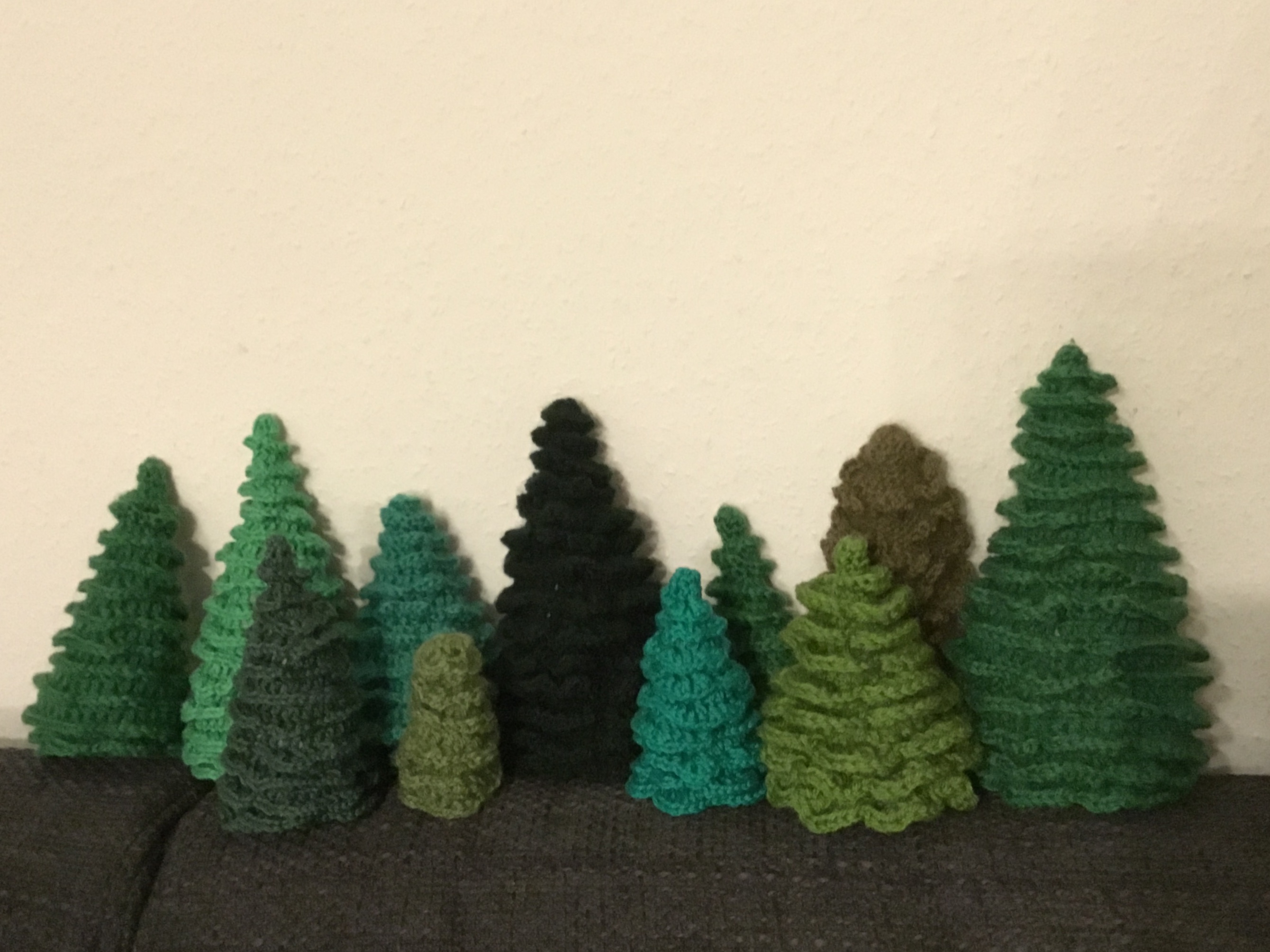 Gratulation zum Titel Shopping-Queen für die Wolle, die Du für den grünen Wald brauchst. Viele extra Punkte fürs Foto. :- ) Für die Tannen und den Adventskalender mit Katzenköpfen sowie die Anleitungen gibts natürlich auch den Titel Weihnachtswichtel. Für die hochgeladenen Anleitungen für den Adventskalender, die Filztasche und die Kindertasche wünsche ich Dir viel Erfolg.