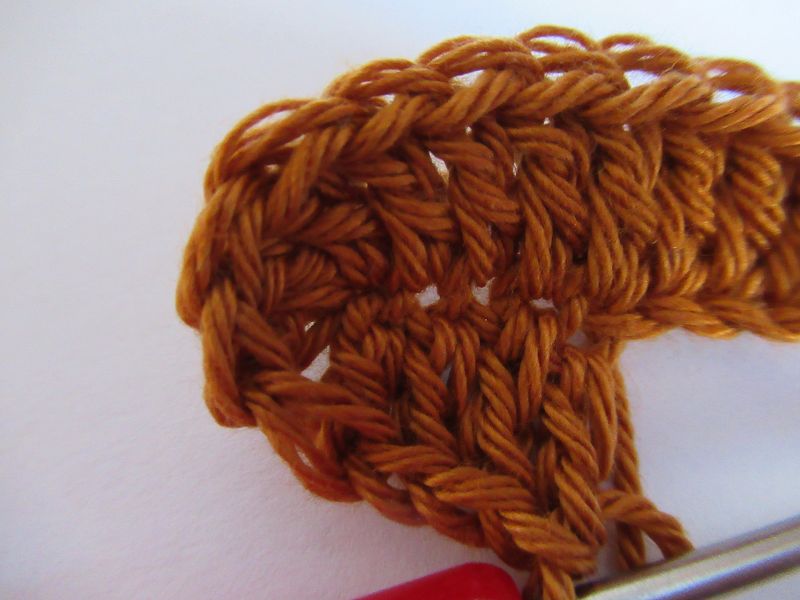 1. Rd: 18 Lm, 1 Stb in die 3.Lm nach der Häkelnd, 14,Stb, 3 Stb in die letzte M, weiter auf der anderen Seite der Lm Kette, 15 Stb, 3 Stb in die letzte M, mit Km in das 1.stb schließen [36]