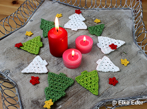 Blätter: Maddison Schulgarn Color, Baumwolle, Farbe 0116 grün • Häkelnadel Nr. 1.25 • Nähnadel und Nähgarn • Je nach Wunsch: Deko-Band, ca. 1m Die abgebildete Kränze (ohne Deko-Band) haben eine Grösse von ca. 20 cm x 17,5 cm.Für Fragen stehe ich gerne zur Verfügung und wünsche Ihnen viel Spass am Häkeln !