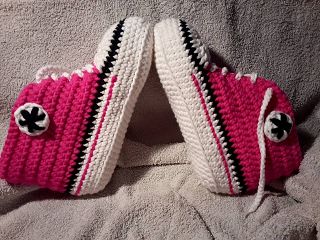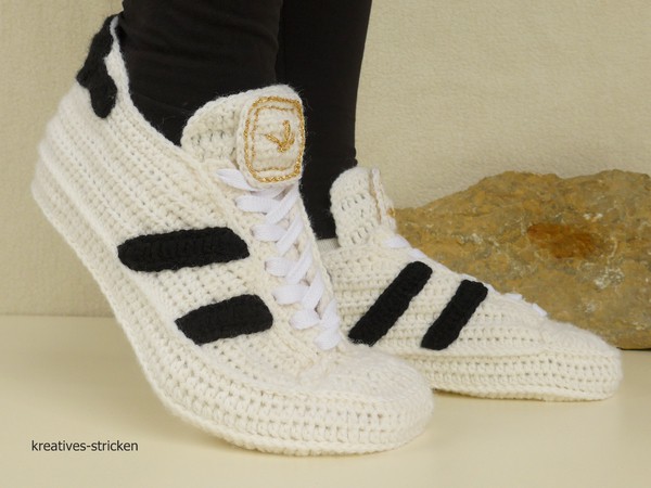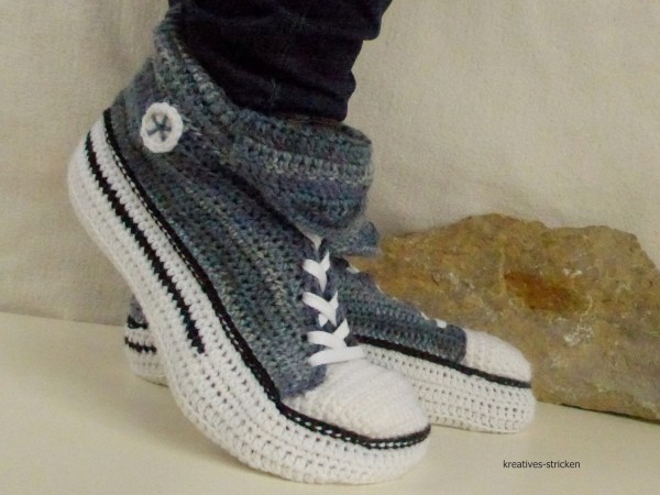 Diese Sneakers wurden mit Nadel 4 gehäkelt.42 Gewinne / 300 € Gesamtwert: 30×5 €, 10×10 €, 2×25 € – einfach Newsletter aktivieren. Kein Kauf nötig. Abmeldung jederzeit. Gewinne in Form von Crazypatterns‑Einkaufsguthaben. Mehr Informationen