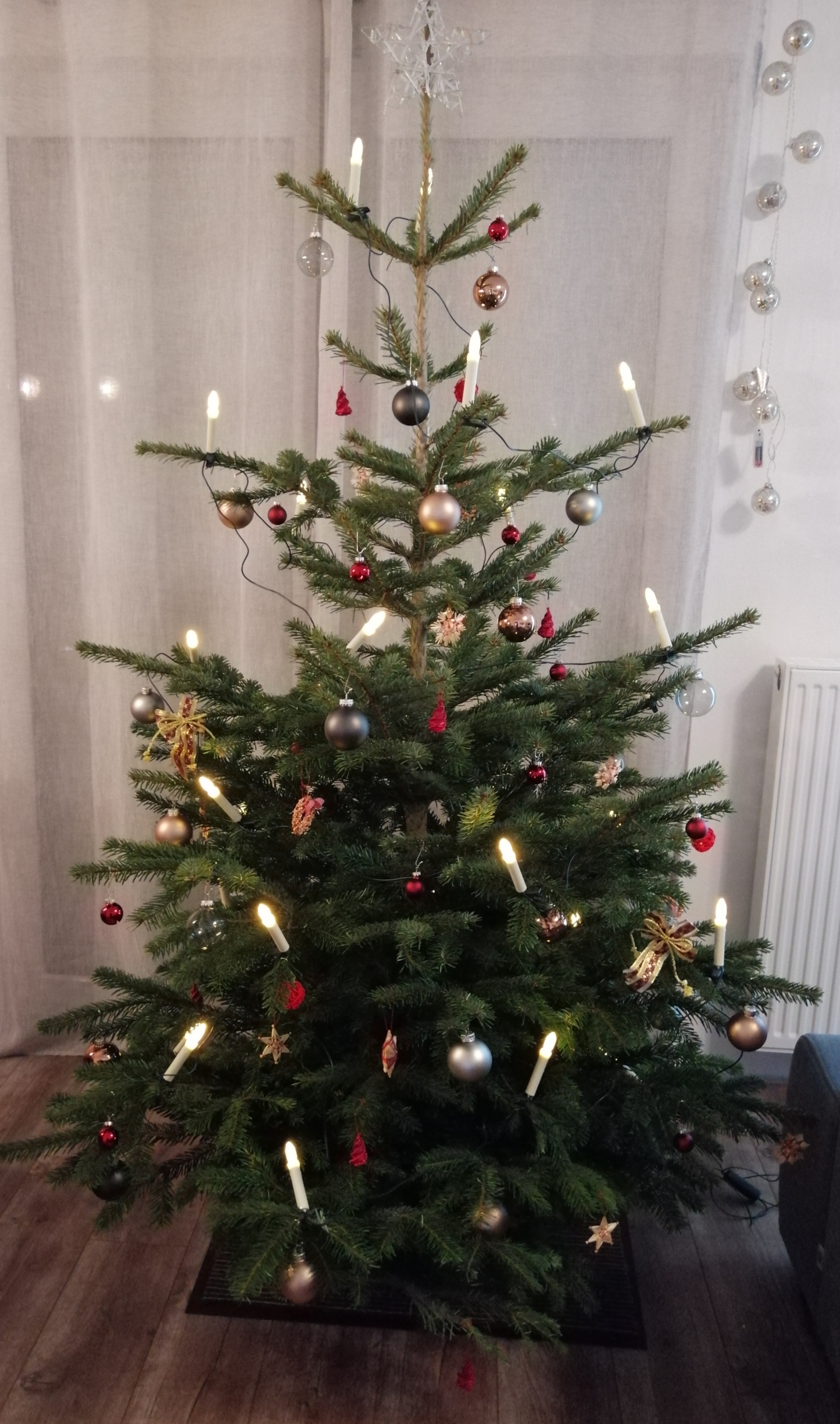 Ein schöner Baum, Tina! (Und elektrische Kerzen tropfen ja nicht, da macht es nichts, wenn sie nicht ganz gerade stehen (Meine sind auch immer schief;-))