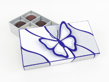Diese Pralinenschachtel ist aus Fotokarton gefertigt und ca. 14 x 3 x 7 cm groß. Sie bietet Platz für 8 kleine Pralinen mit dem Durchmesser von 2-2,5 cm. Die Schachtel ist einfach nachzuarbeiten und auch für Anfänger geeignet.