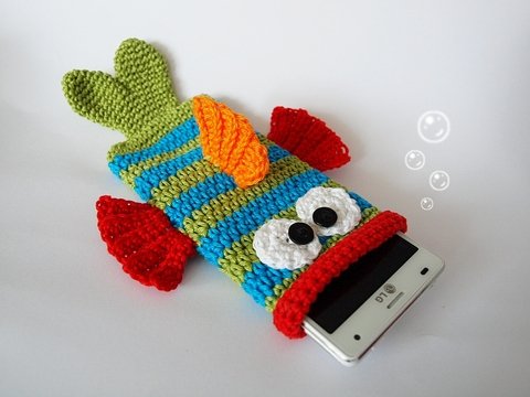 Handytasche Fisch, Häkelanleitung, PDF Datei