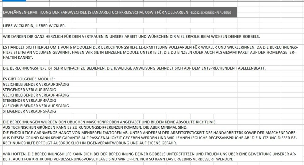 Berechnungshilfe zur Lauflängenermittlung für Farbverlaufsgarne im Vollfarbverlauf für bis zu 8 Farben, Modul:
