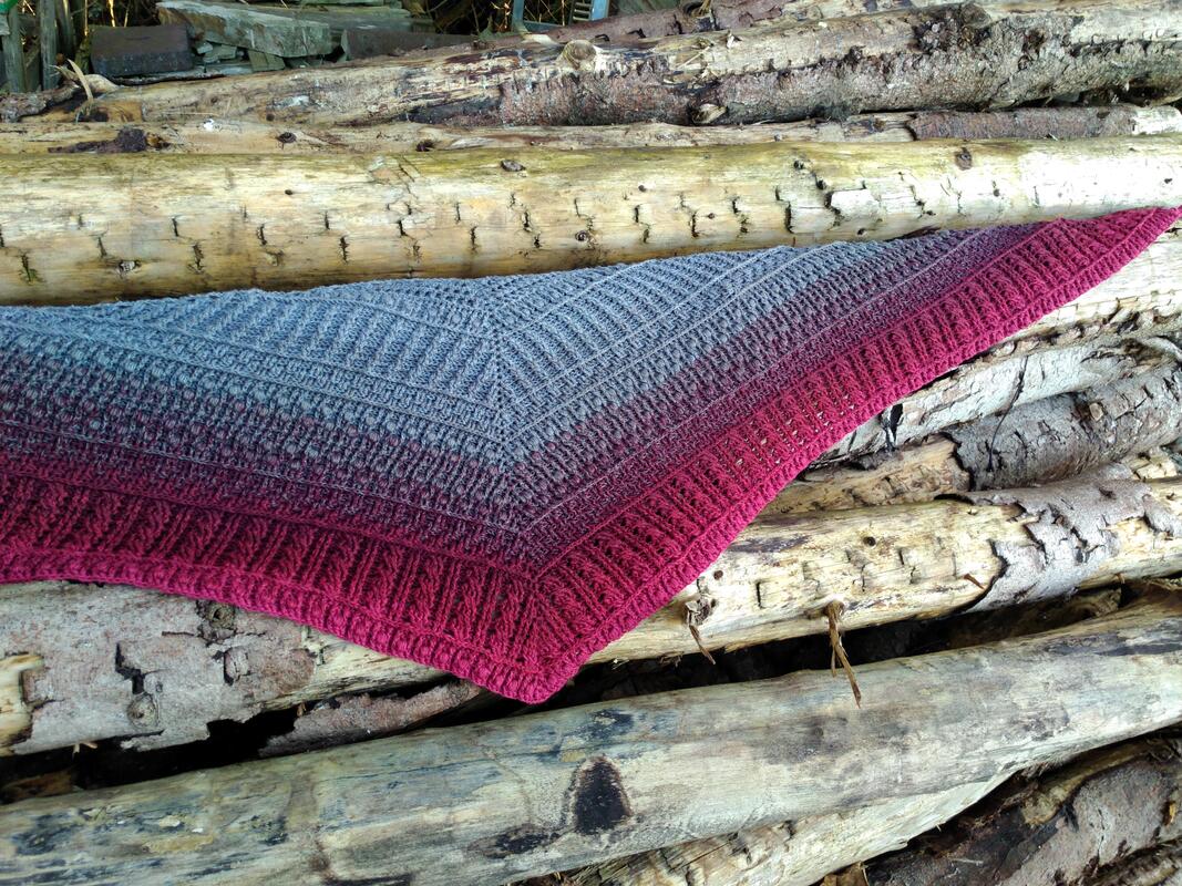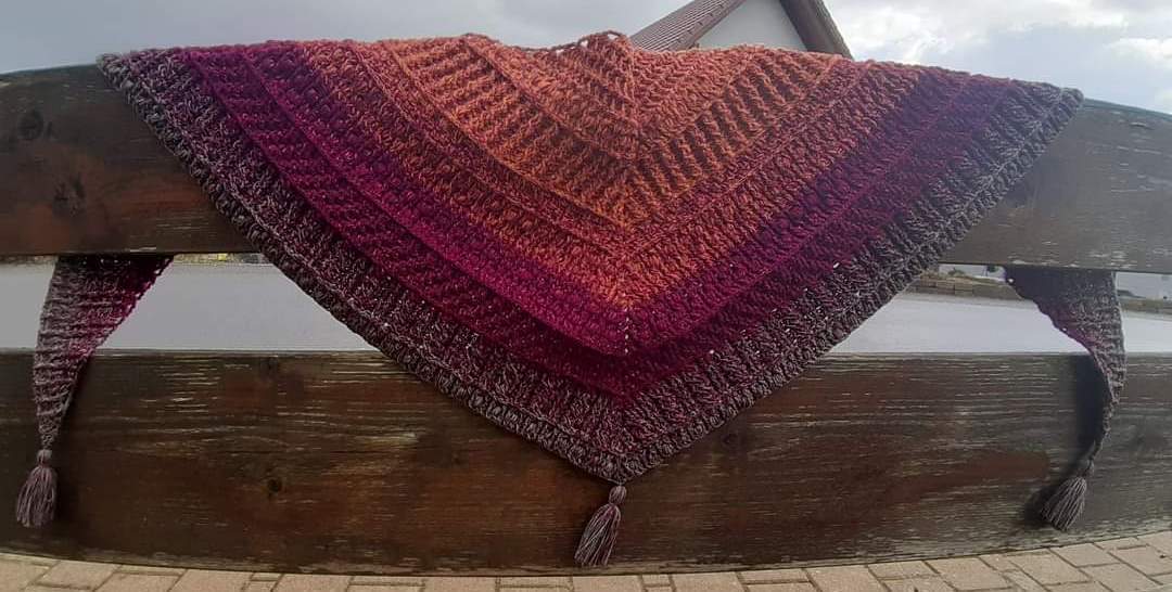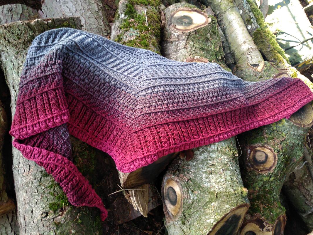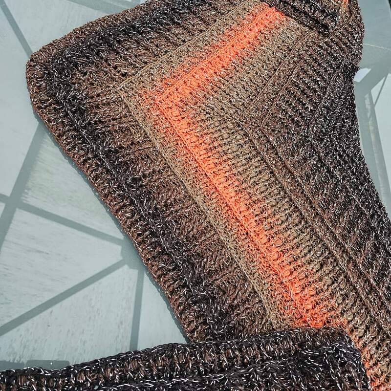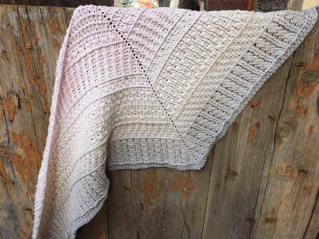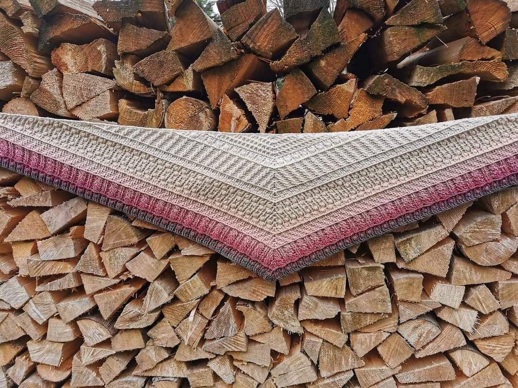 Es kann mit jedem gewünschten Garn gehäkelt werden, ich würde dazu einen Farbverlaufsbobbel mit 1400 m empfehlen. Ich habe für mein Tuch den Bobbel Robina von Kandelas Handarbeitsbox verwendet.