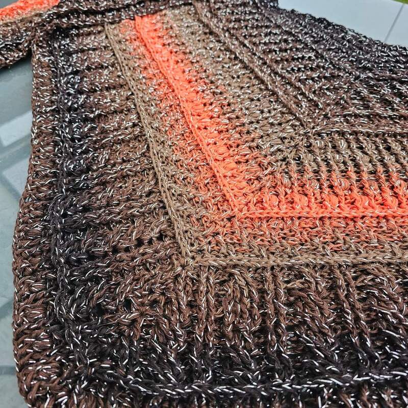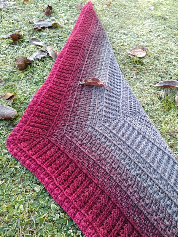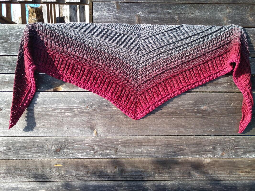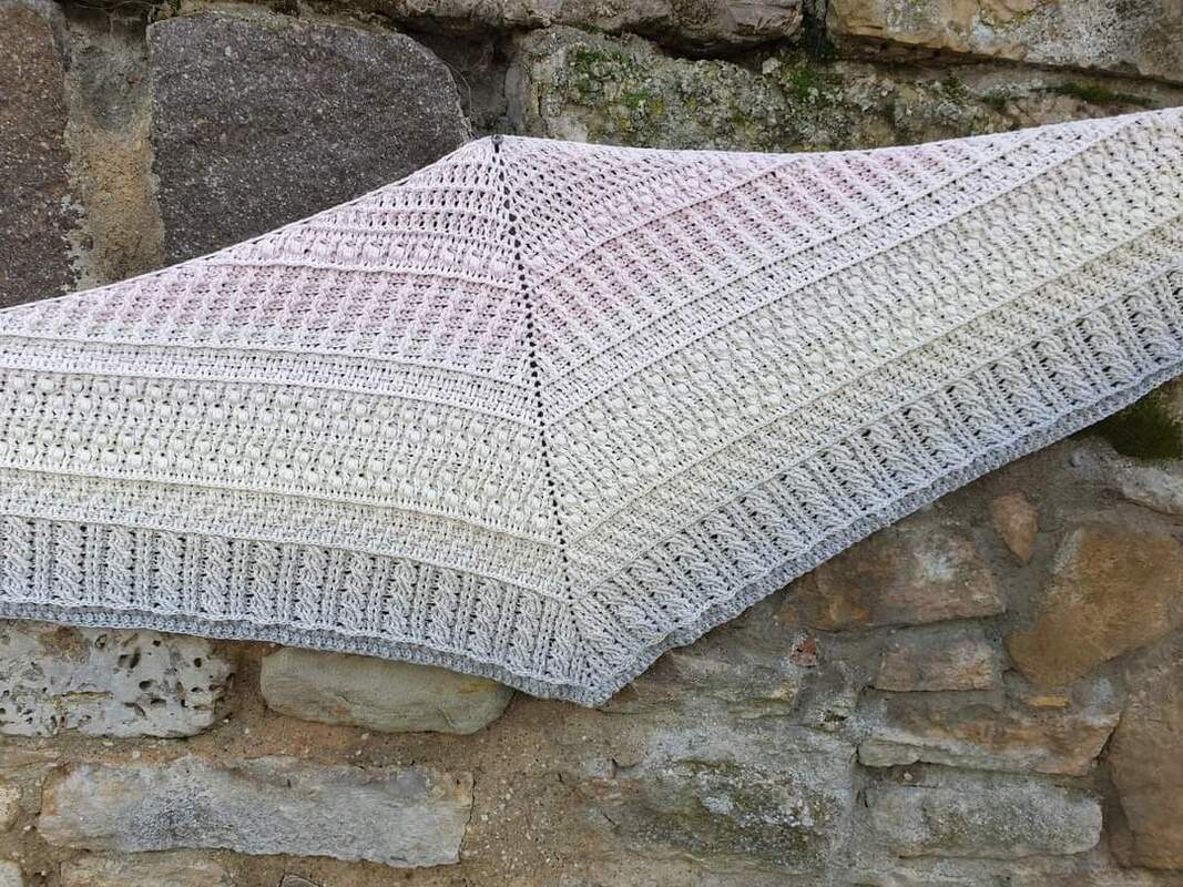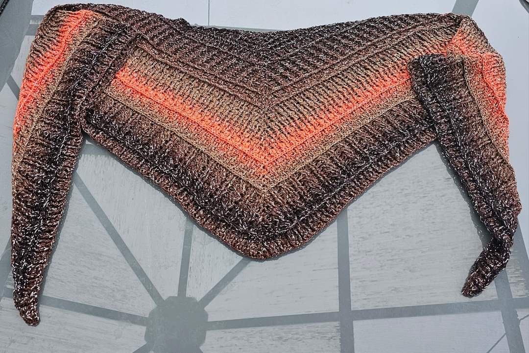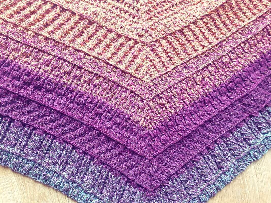 Es kann mit jedem gewünschten Garn gehäkelt werden, ich würde dazu einen Farbverlaufsbobbel mit 1400 m empfehlen. Ich habe für mein Tuch den Bobbel Robina von Kandelas Handarbeitsbox verwendet.