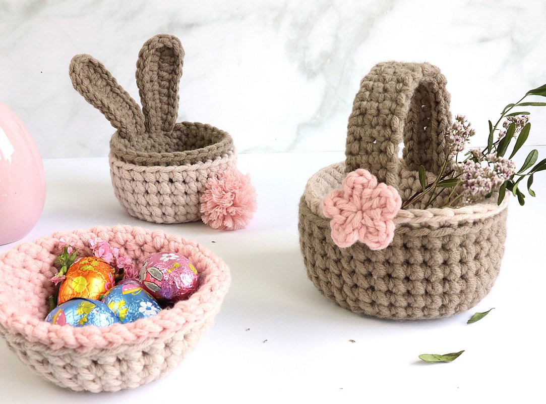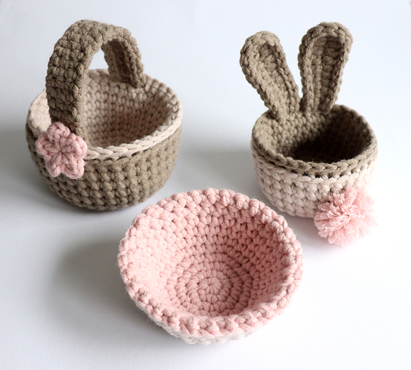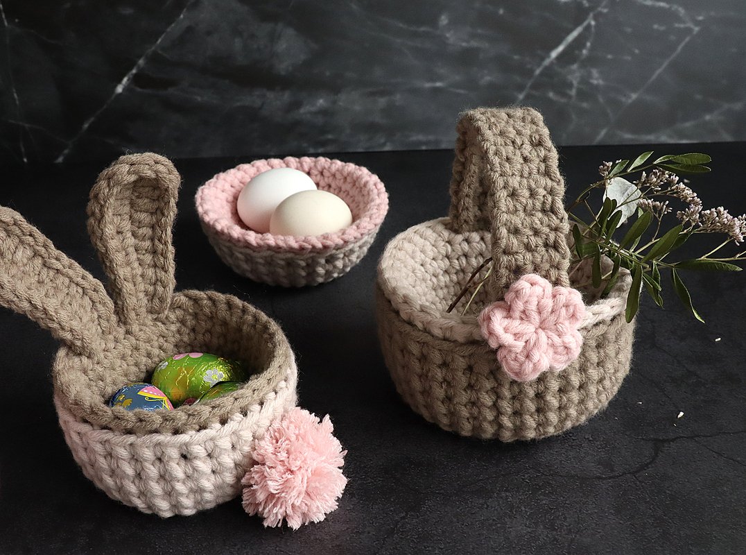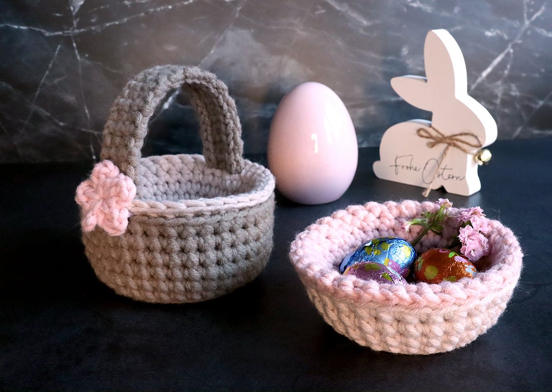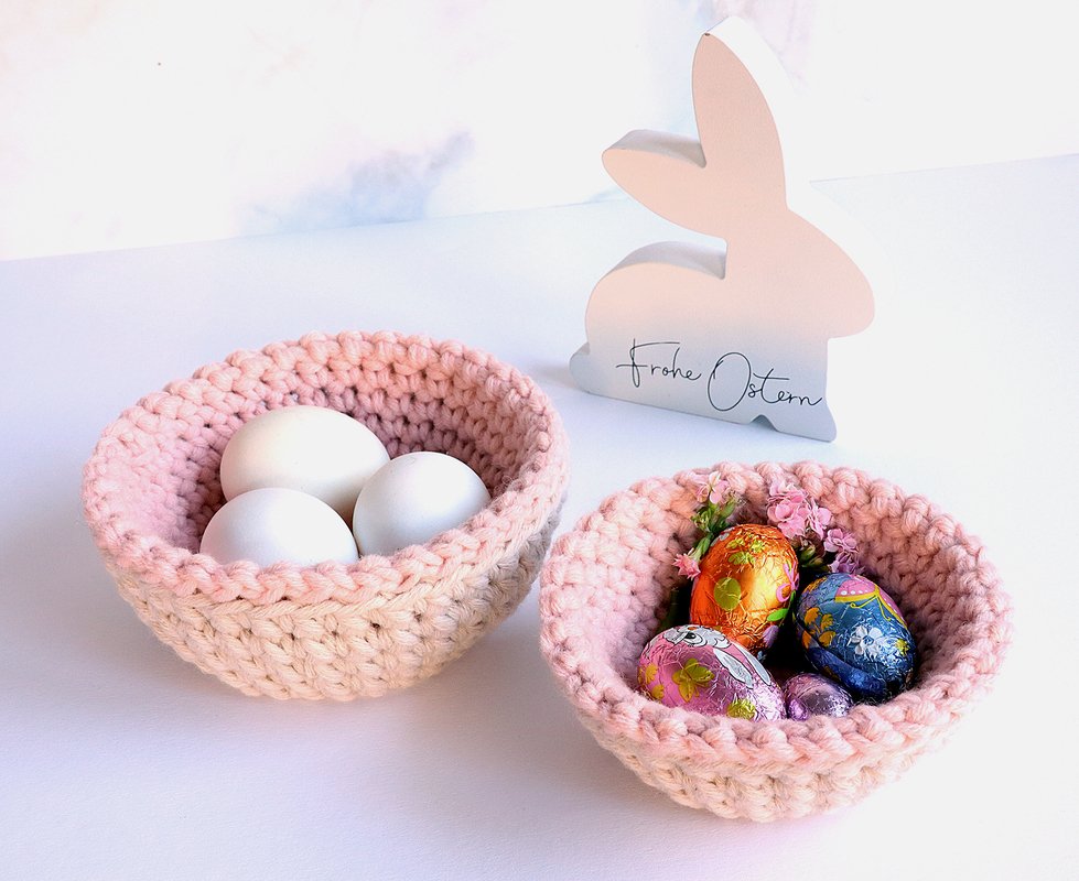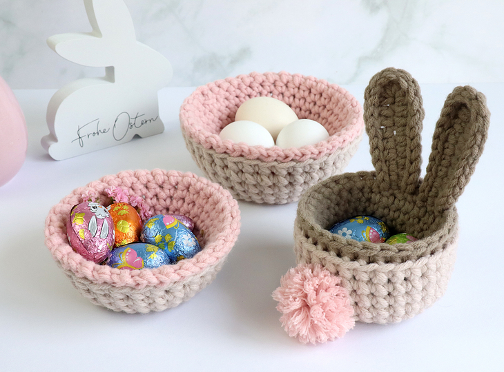 Dieses schöne Set beinhaltet die Anleitung für einen süßen Hasenkorb, einen Henkelkorb mit Blume und ein Nest in 2 praktischen Größen. Die Körbe haben die perfekte Größe für Ostersüßigkeiten oder ein paar Frühstückseier. Du kannst darin aber auch wunderbar Kosmetikprodukte oder andere Kleinigkeiten verschenken oder aufbewahren. Der Henkelkorb ist auch toll als Puppenspielzeug verwendbar.