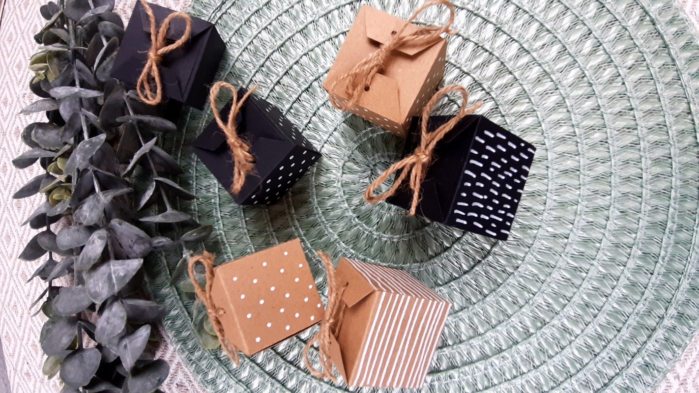 Ihr erhaltet eine Faltvorlage für eine würfelförmige Geschenkschachtel.