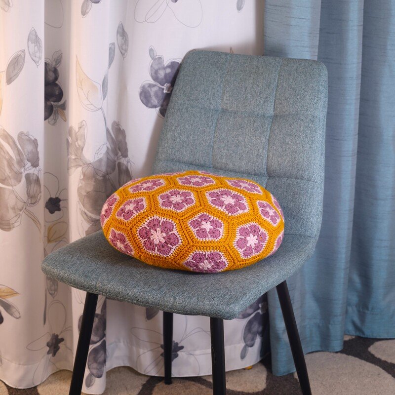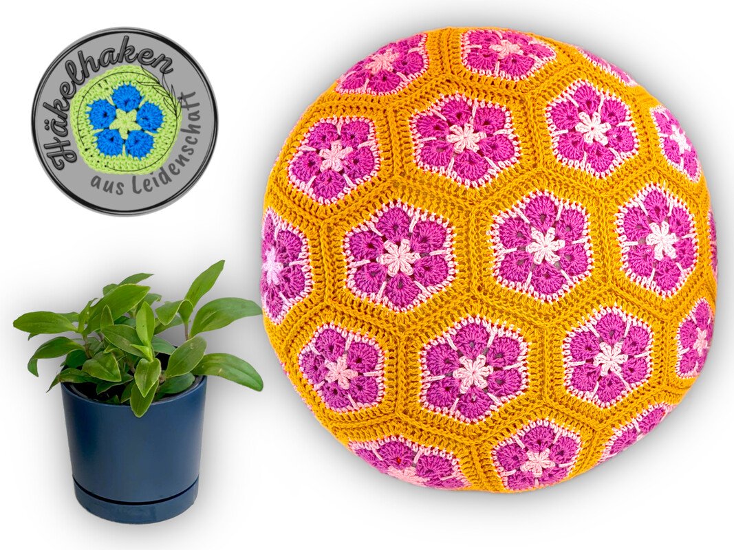 Du kannst dieses wunderschöne Kissen mit African Flowers häkeln. Das wird ein dekorativer Kissenbezug. Auch als ein selbstgemachtes Geschenk kommt das Kissen wunderbar an.
