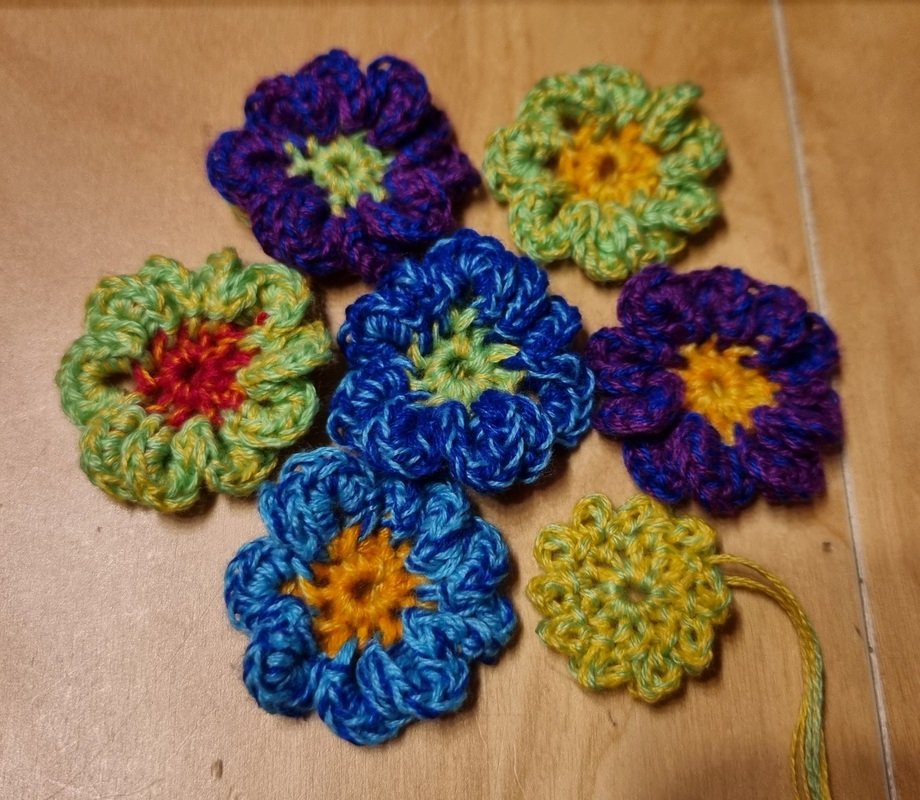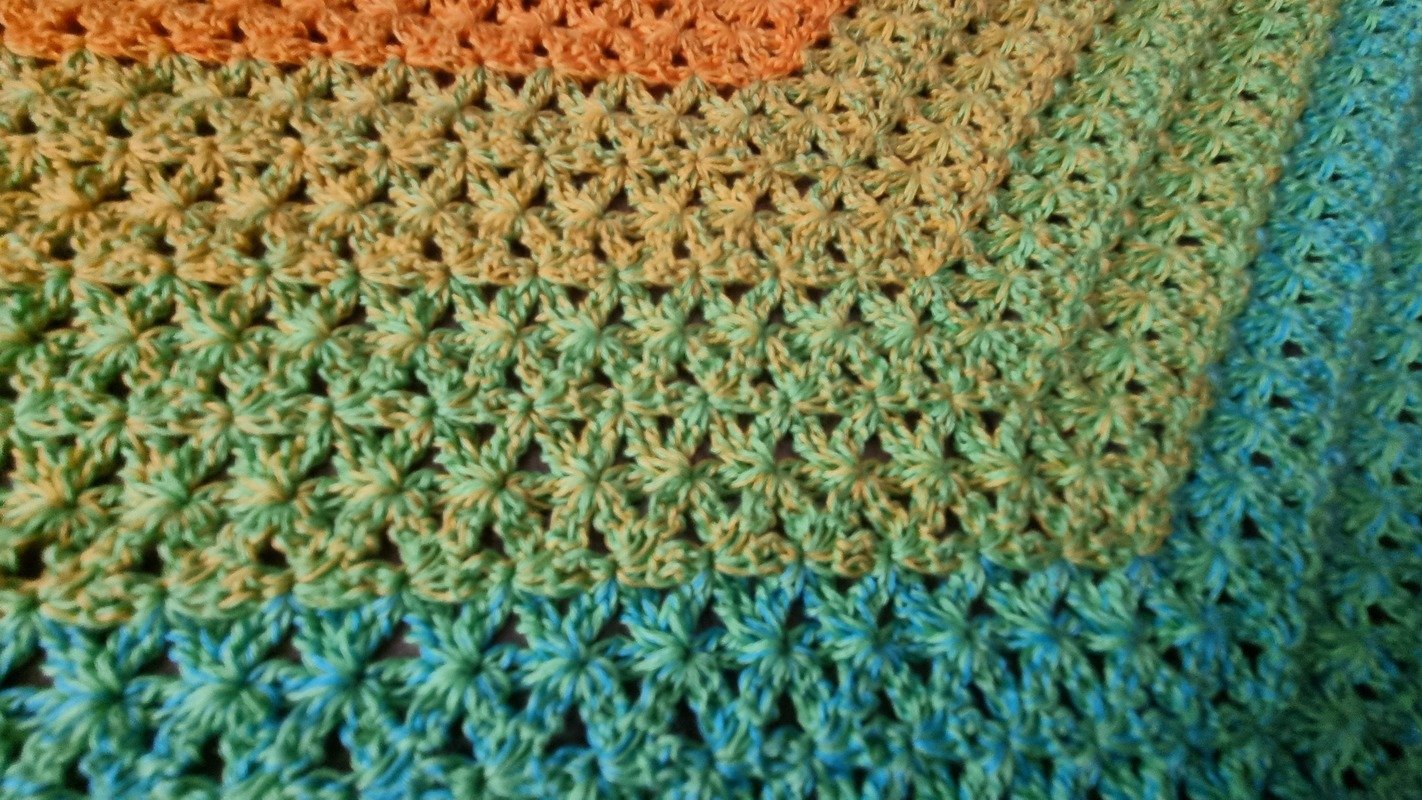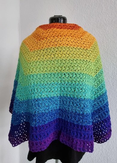 Die Häkelschrift wird zudem schriftlich erläutert und es gibt viele Fortschrittsfotos von den einzelnen Schritten. Die Anleitung umfasst 9 Seiten und beinhaltet auch eine Häkelschrift für die 5-Eck-Variante des Tuchs sowie ein einfaches Blumenmuster zum Applizieren auf das Tuch.