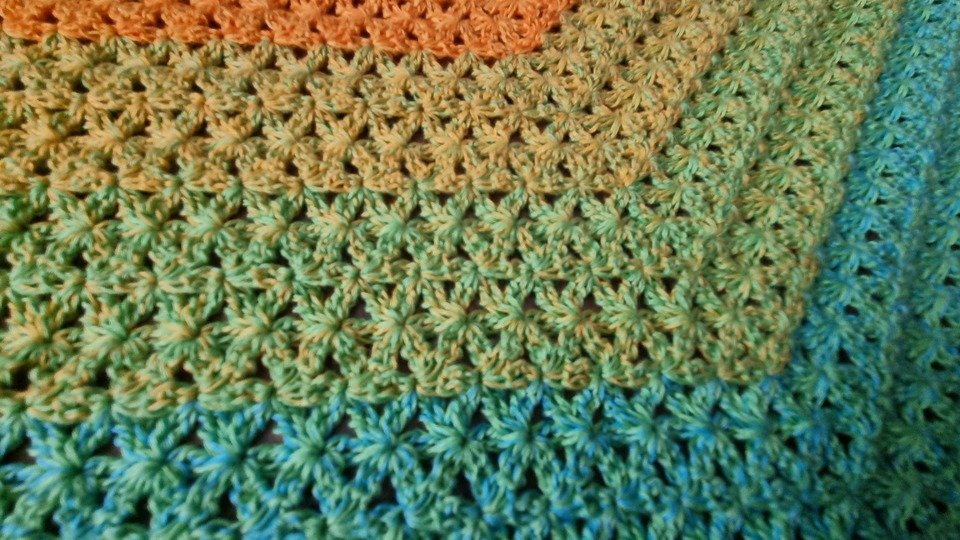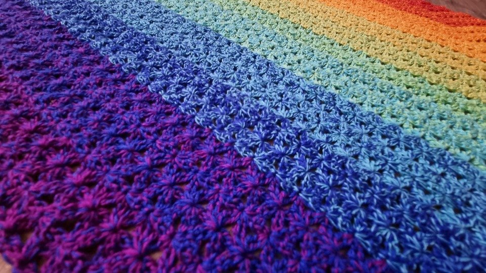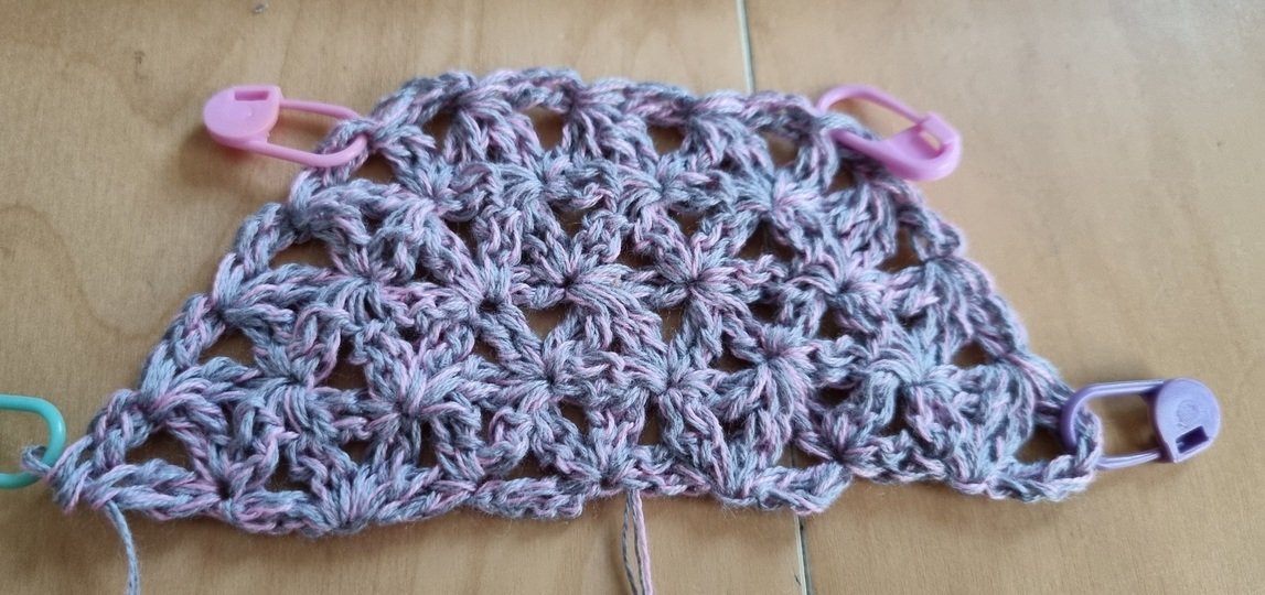 Das Tuch besteht aus Luftmaschen und Doppelstäbchen. Am Anfang ist es kompliziert, sich hinein zu denken, aber wenn du ein Stück gehäkelt hast, ist es schnell verinnerlicht.
