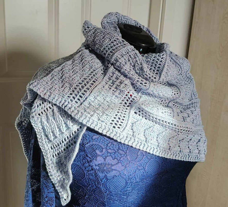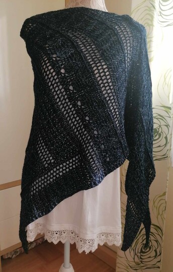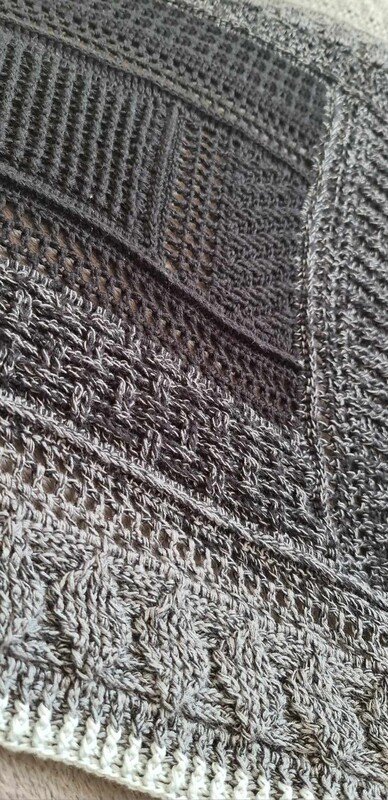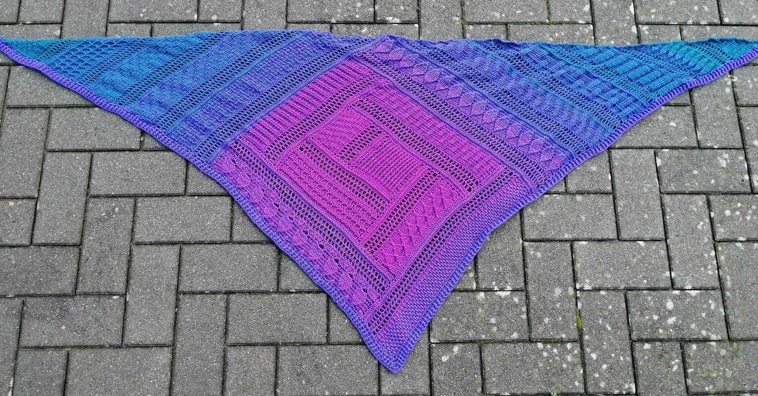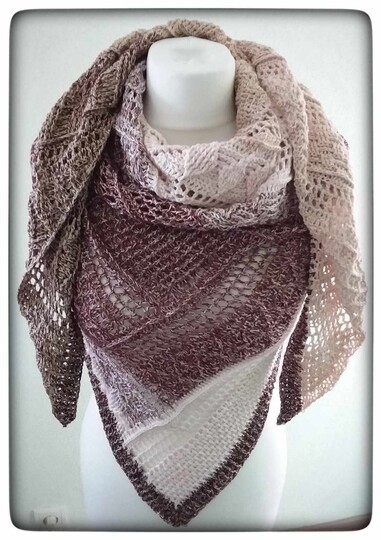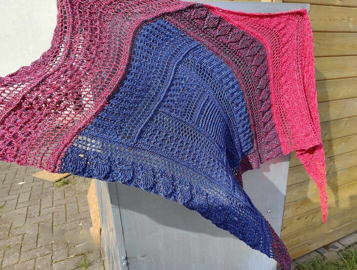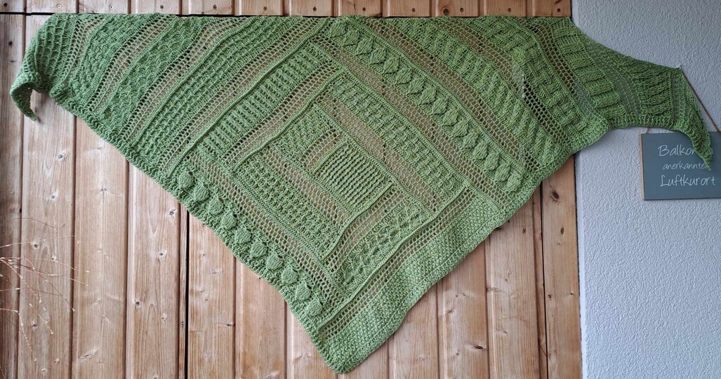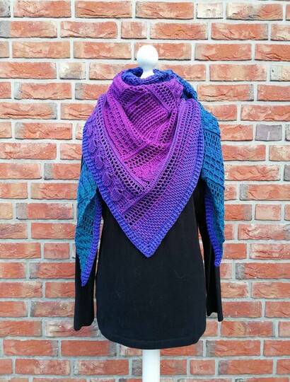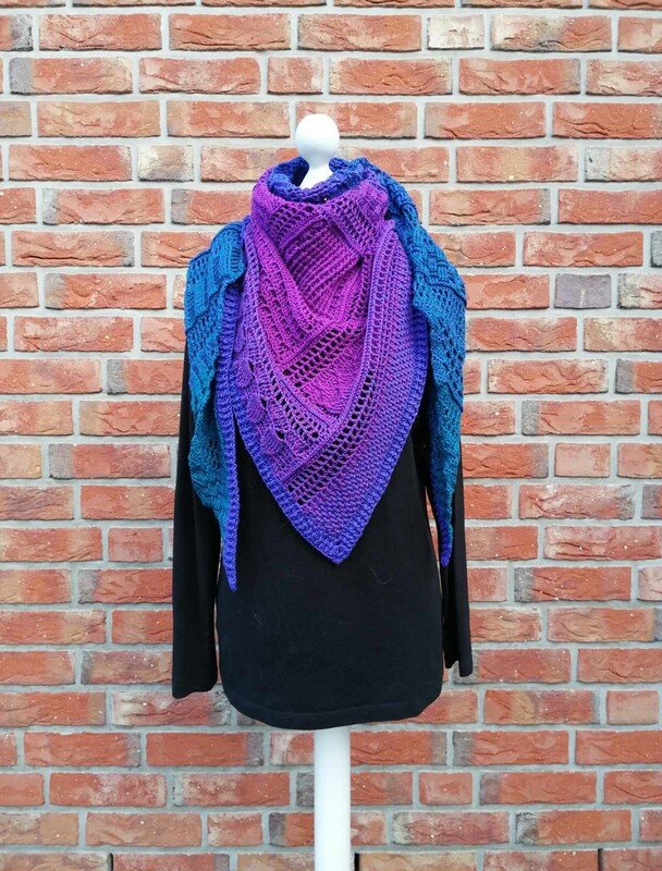 Das Tuch ist ein tiefes Dreieckstuch, mit vielen verschiedenen Reliefmustern - ein Hingucker!