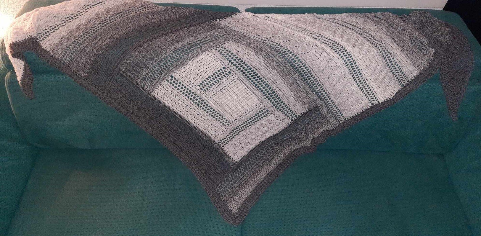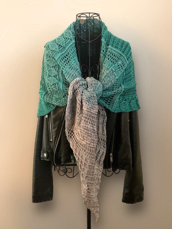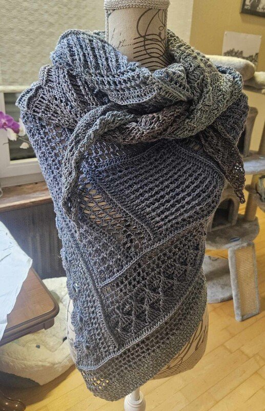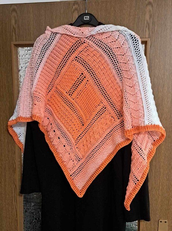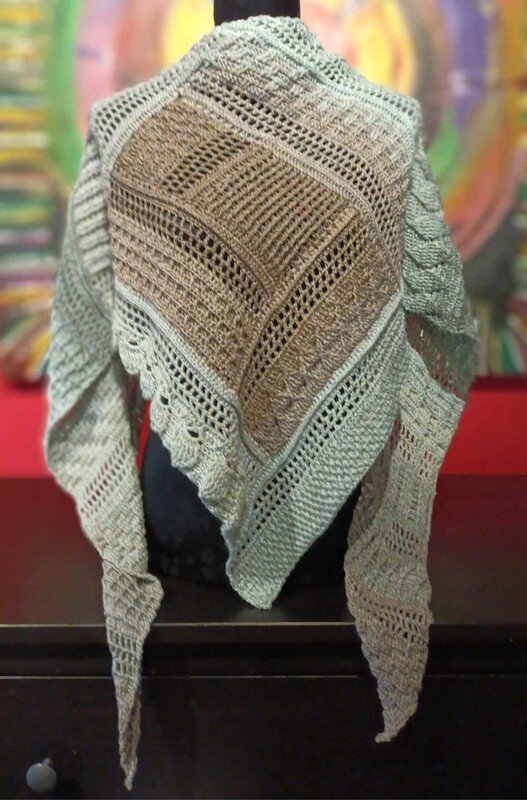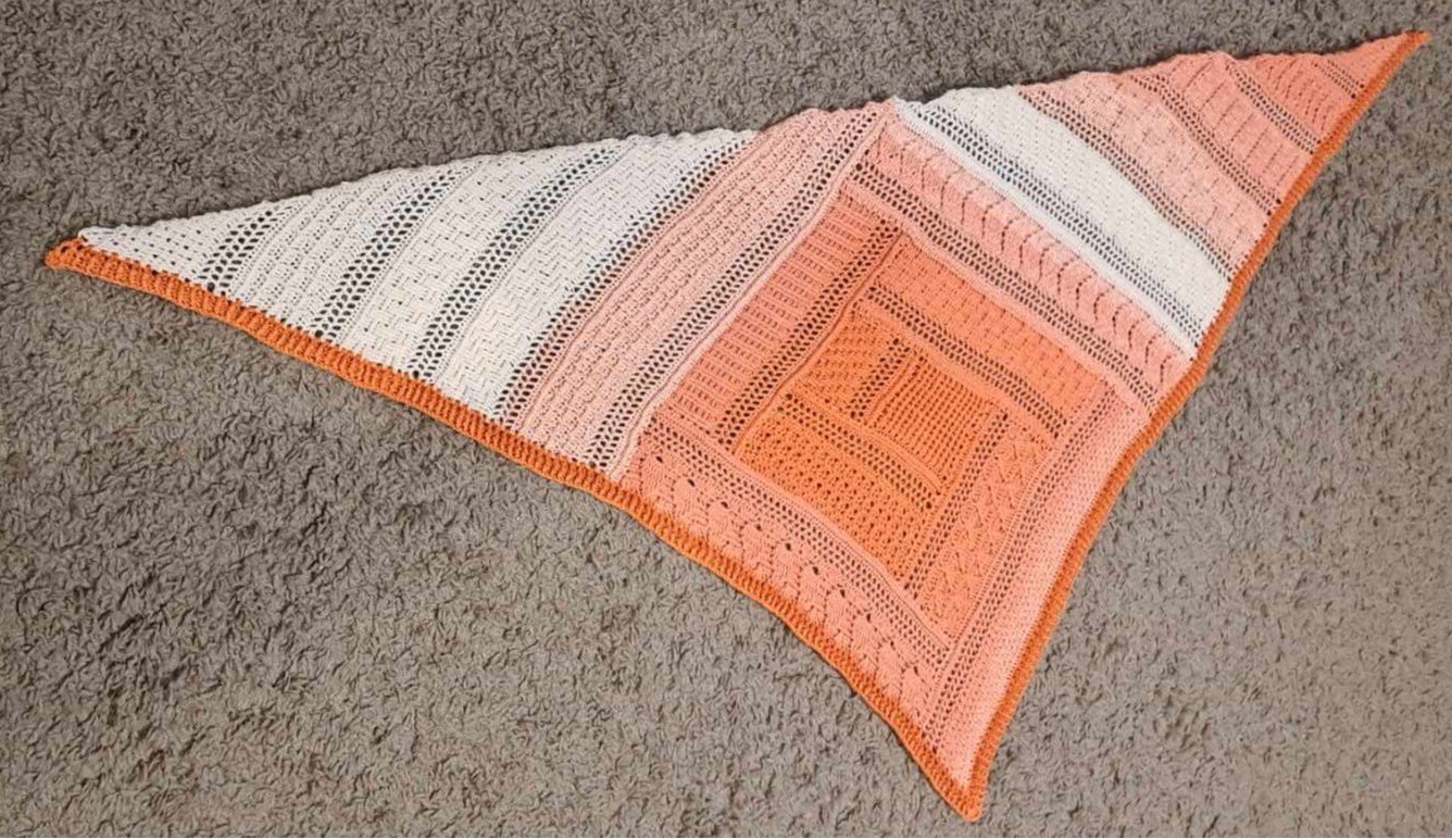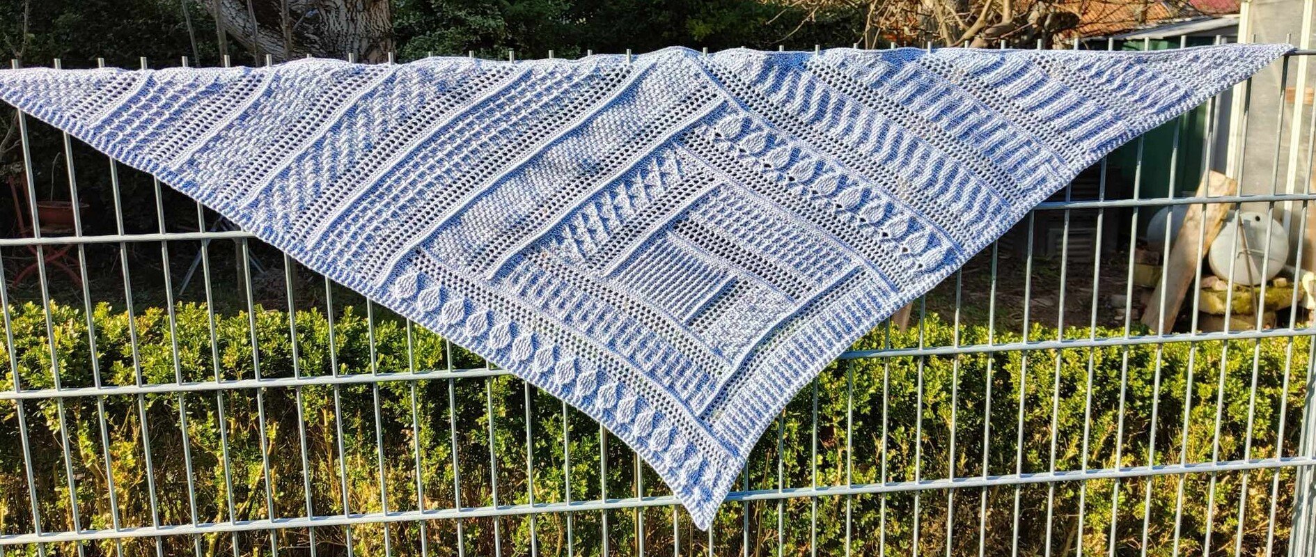 Das Tuch ist ein tiefes Dreieckstuch, mit vielen verschiedenen Reliefmustern - ein Hingucker!